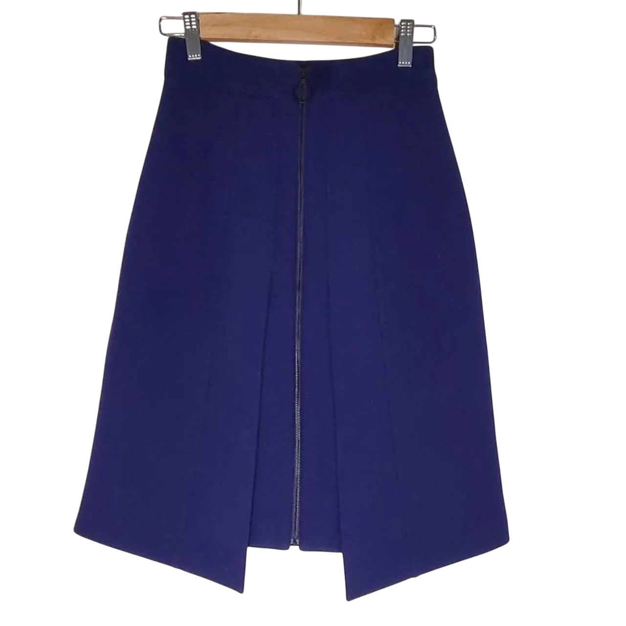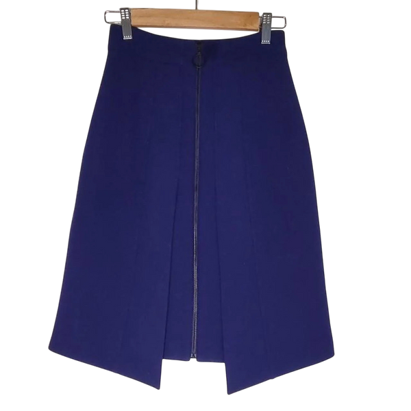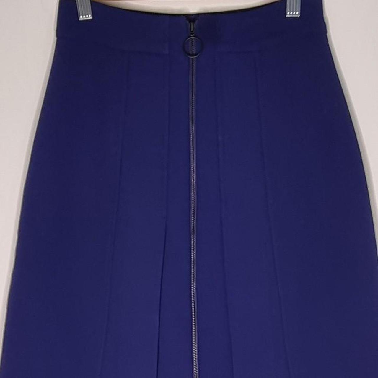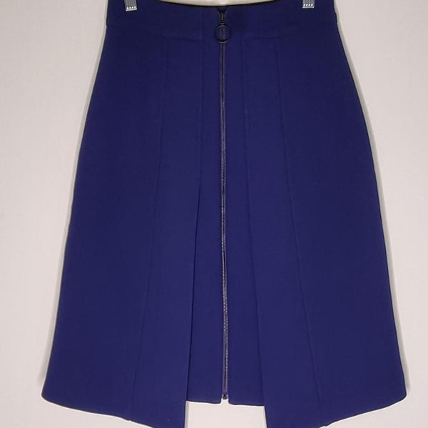 Cue skirt thats simple and versatile. Blue Cue pleated skirt with front zipper.