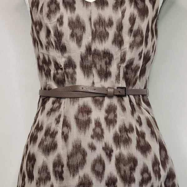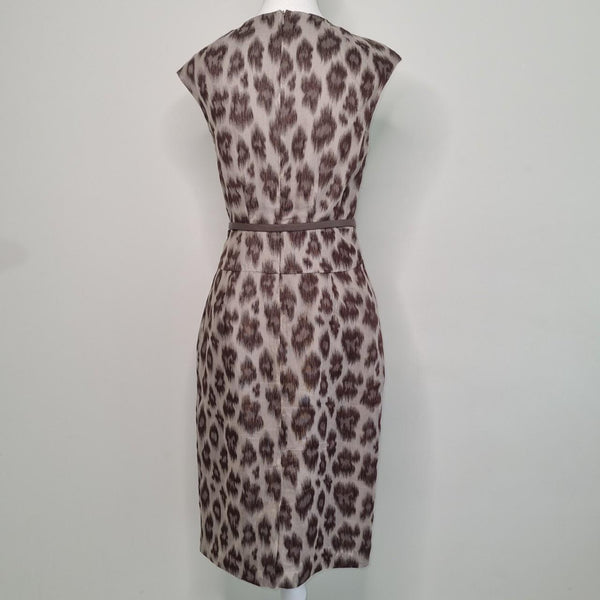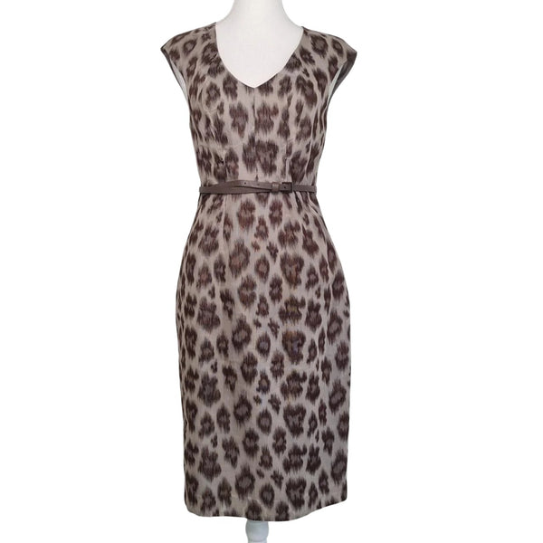 David Lawrence Animal Print Belted Sheath Dress Beige Size 8 AU