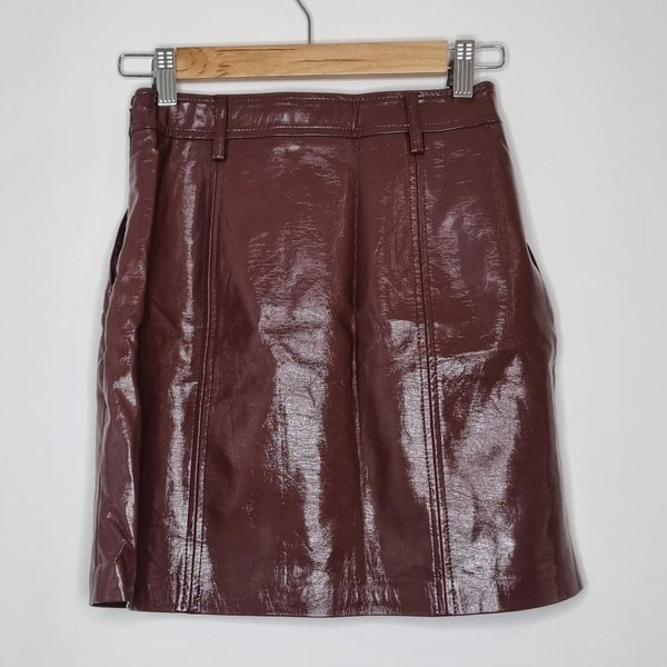 Forever New Chocolate Brown Faux Leather Mini Skirt Brown Size 6 AU