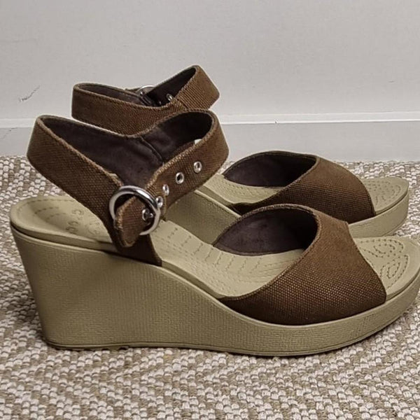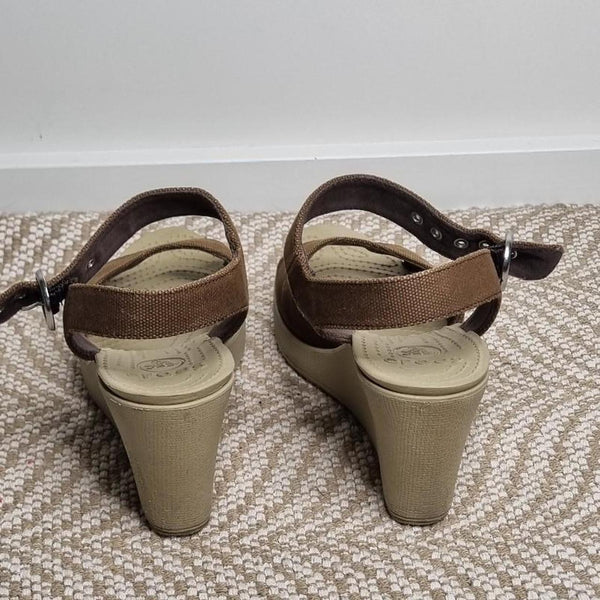 Crocs Brown Canvas Wedge Sandals – Women’s W9 (AU/US 9 / EU 40)