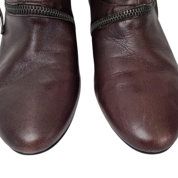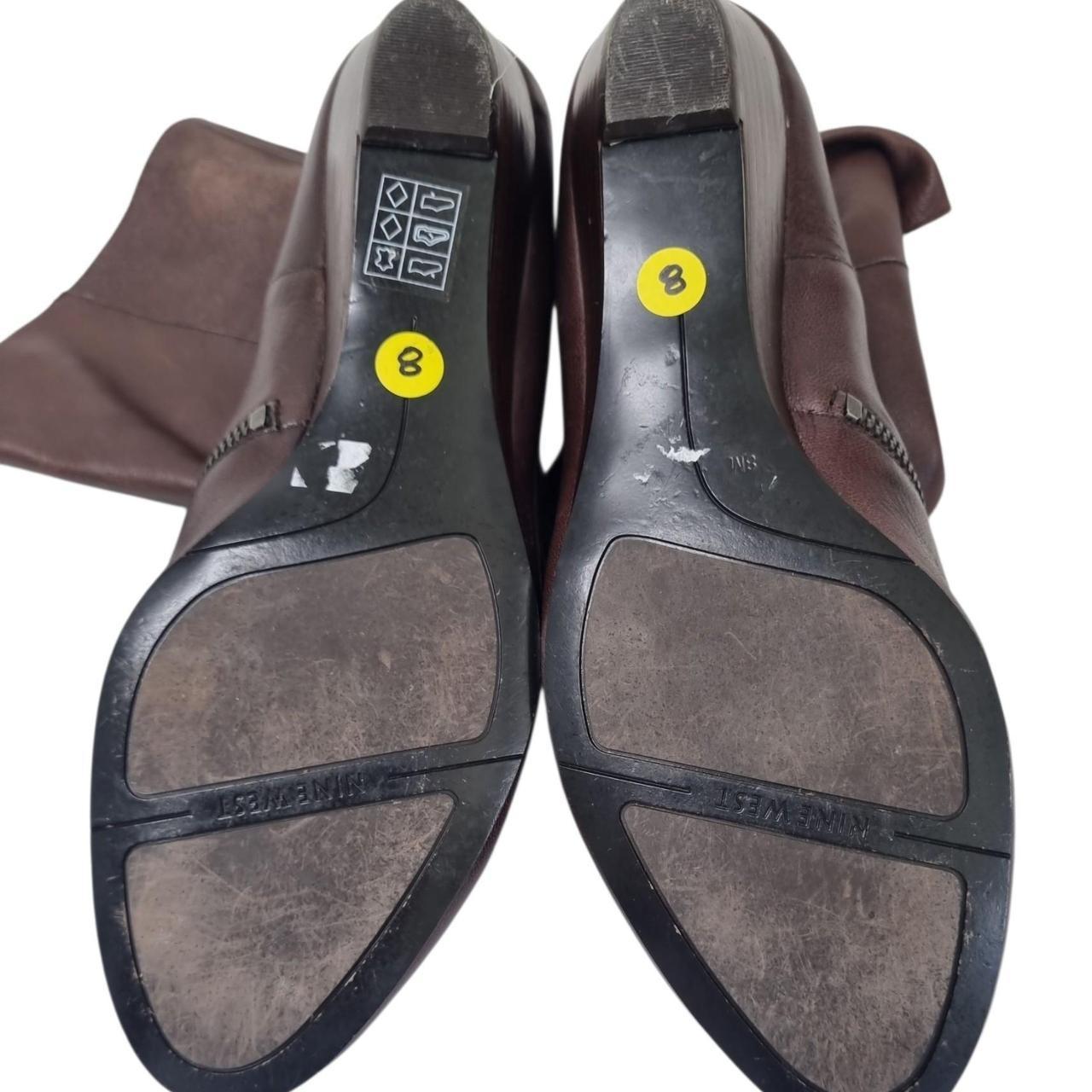 Nine West Brown Leather Ankle Boots Size 8 – Wedge Heel Zip Detail