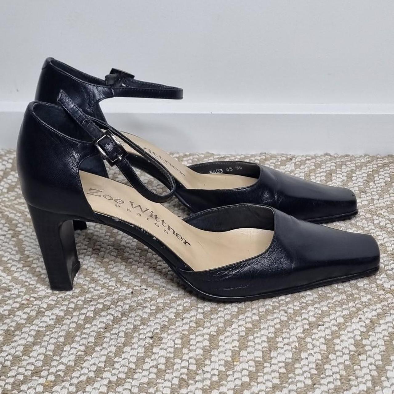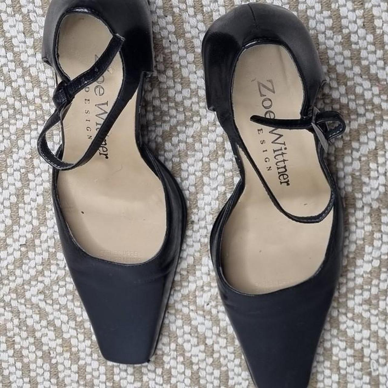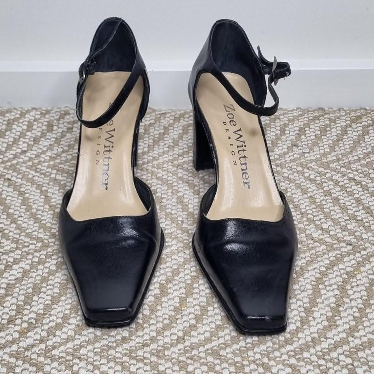 Zoe Wittner Black Leather Slingback Heels Size 36 (AU 5) A timeless pair with a modern edge these Zoe Wittner Design slingbacks feature the iconic square toe silhouette thats currently trending and often hard to find in genuine leather. Perfect for both vintage-inspired looks and sleek minimalist styling. - Brand: Zoe Wittner Design - Colour: Black - Material: Genuine leather upper - Length of shoe approx. 25cm - Style: Slingback with buckle strap Size:.