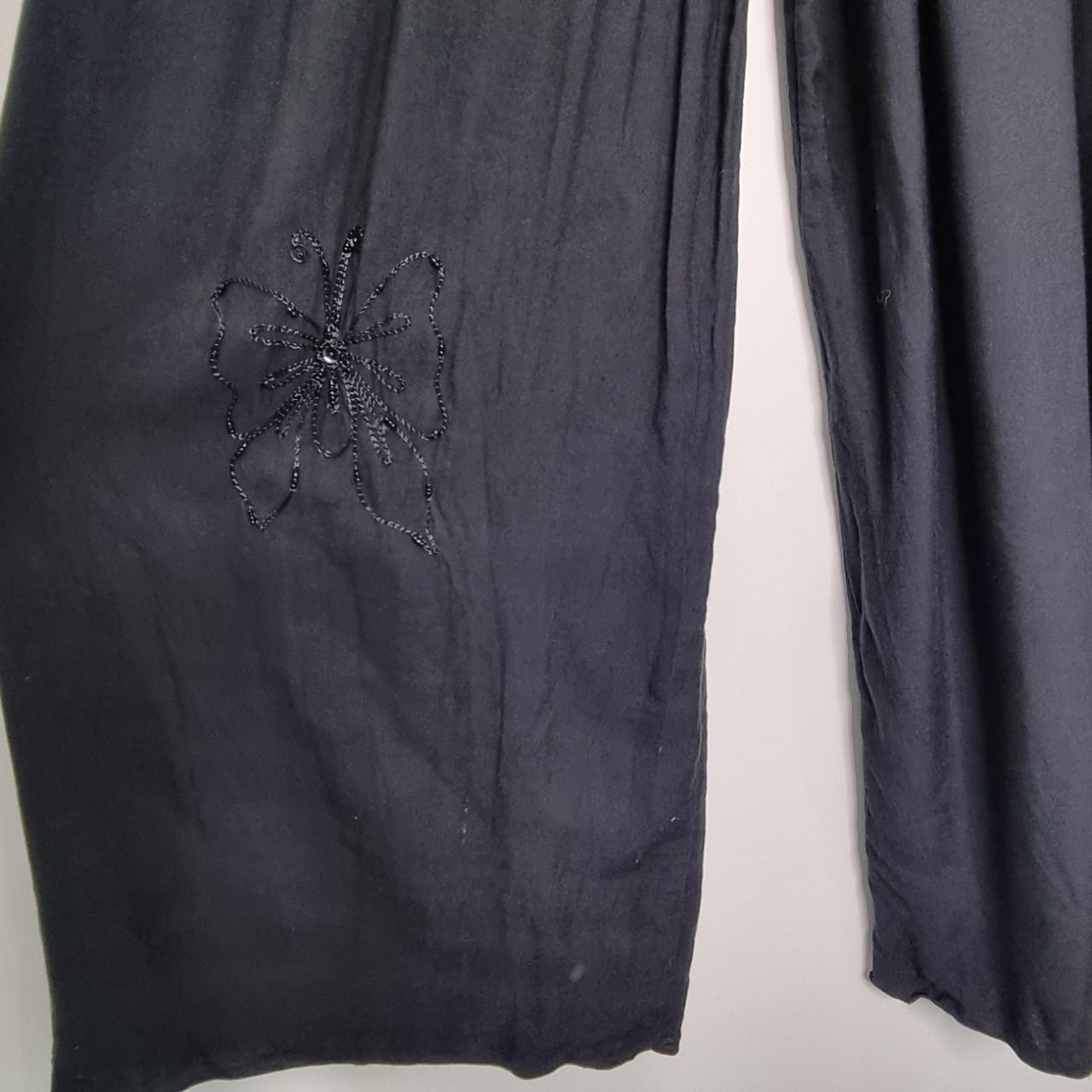 • Features: Elastic waist, wide leg, beaded butterfly embroidery