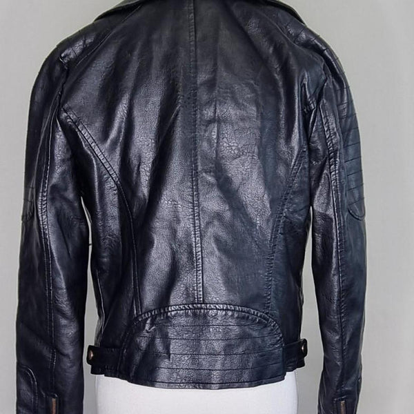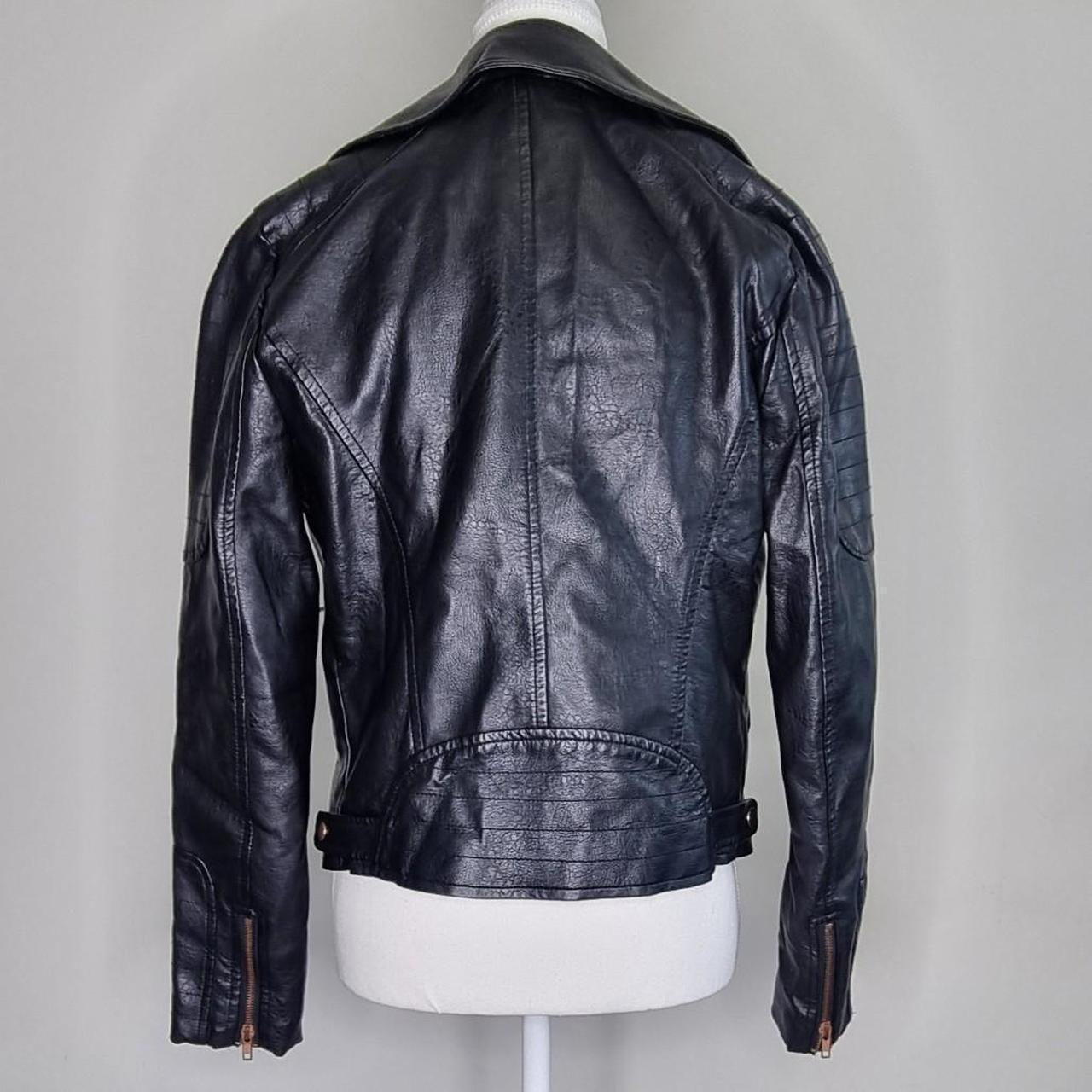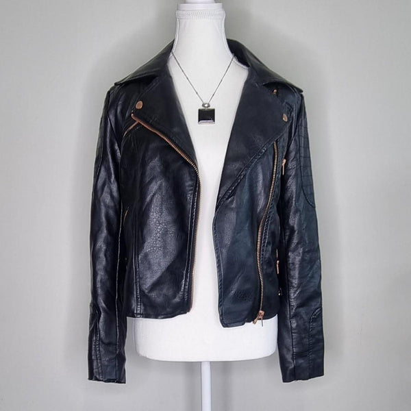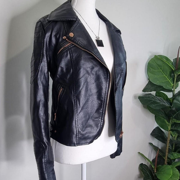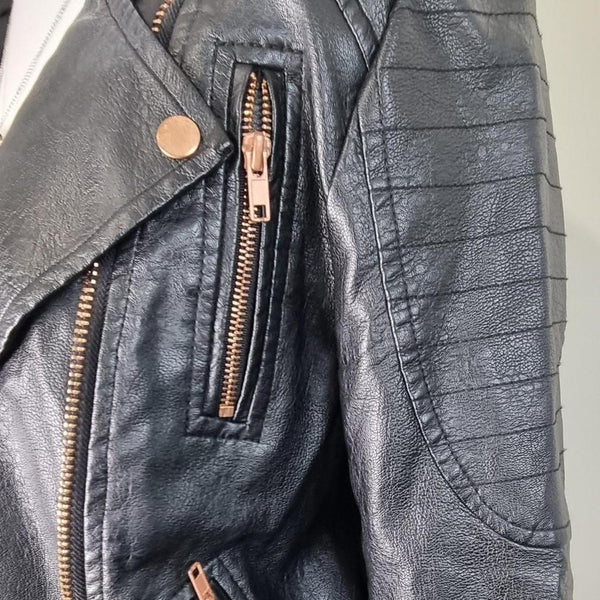 Black Faux Leather Moto Jacket Rose Gold Hardware Size AU 8