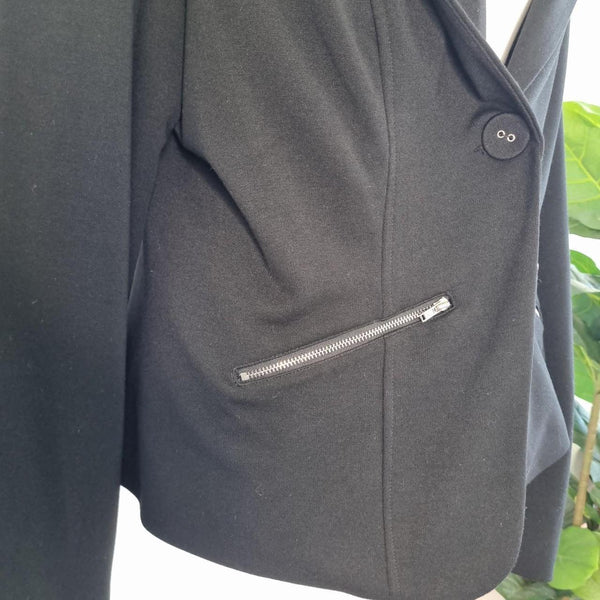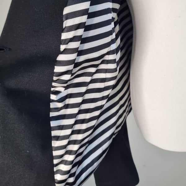 City Chic Black Blazer Size 16 Classic tailored blazer from City Chic in black with a sleek striped satin lining (black & white). Fully lined for comfort and structure. Minor light scratches to satin underarm lining (not visible when worn) overall excellent condition. Tailored fit Satin striped lining for a polished finish Single-breasted design with button fastening Size AU 16 (runs small best fits AU 14/Small 16) Viscose blend comfortable with a luxe.