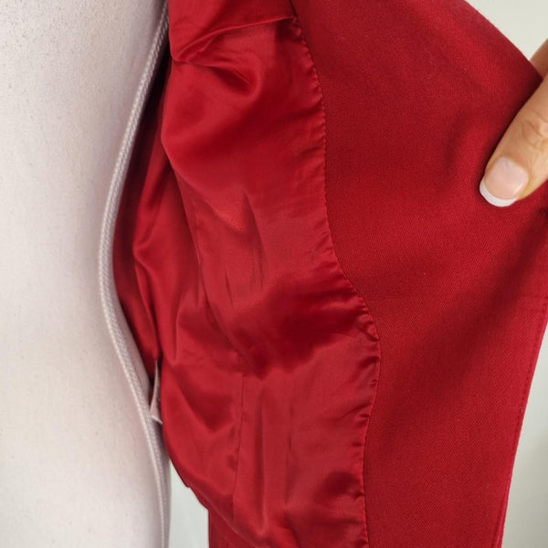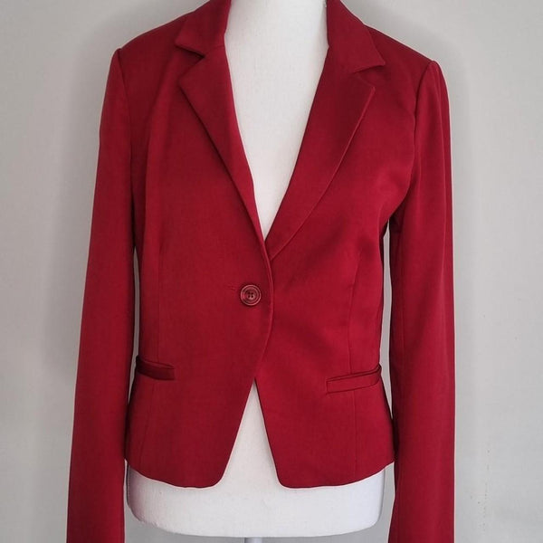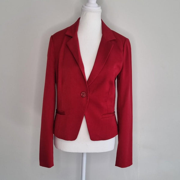 Dotti Red Single-Button Blazer Size 10 (AU) Stand out with this vibrant red blazer from Dotti. A classic tailored cut with a single button closure, notch lapel, and two faux front pockets. Fully lined in matching red satin, this blazer adds instant polish whether youre dressing up jeans or finishing a work outfit. - Brand: Dotti - Size: 10 (AU) - Colour: Red Features: Single button closure, notch lapel, tailored fit, fully lined, faux front pockets.