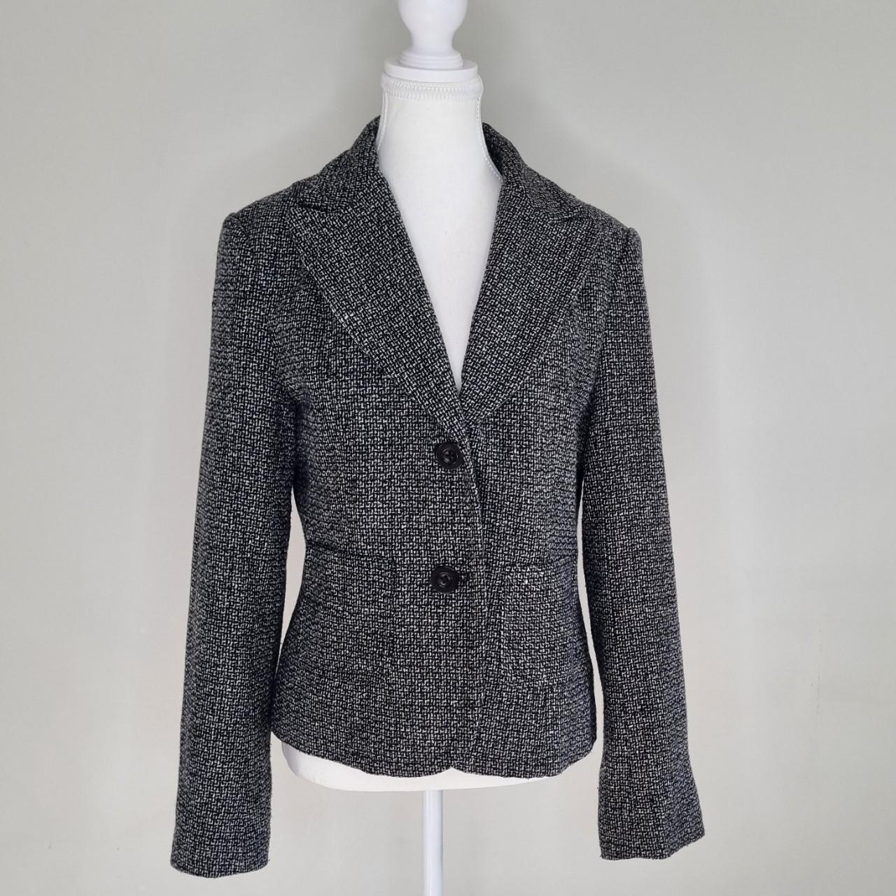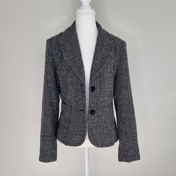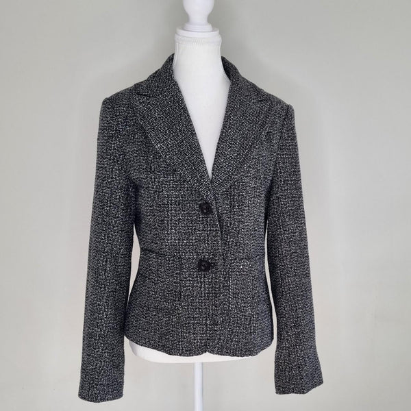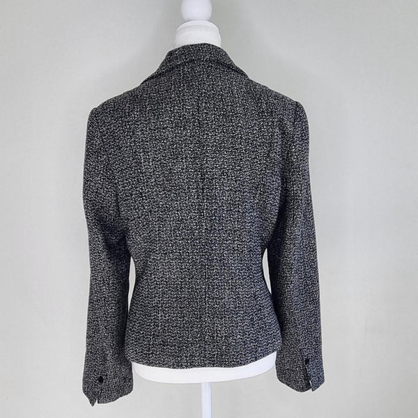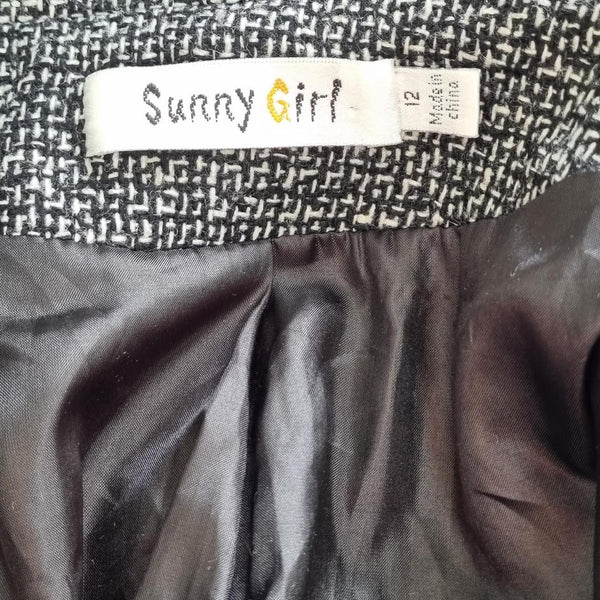 Sunny Girl Black White Textured Wool Blend Blazer Size 12
