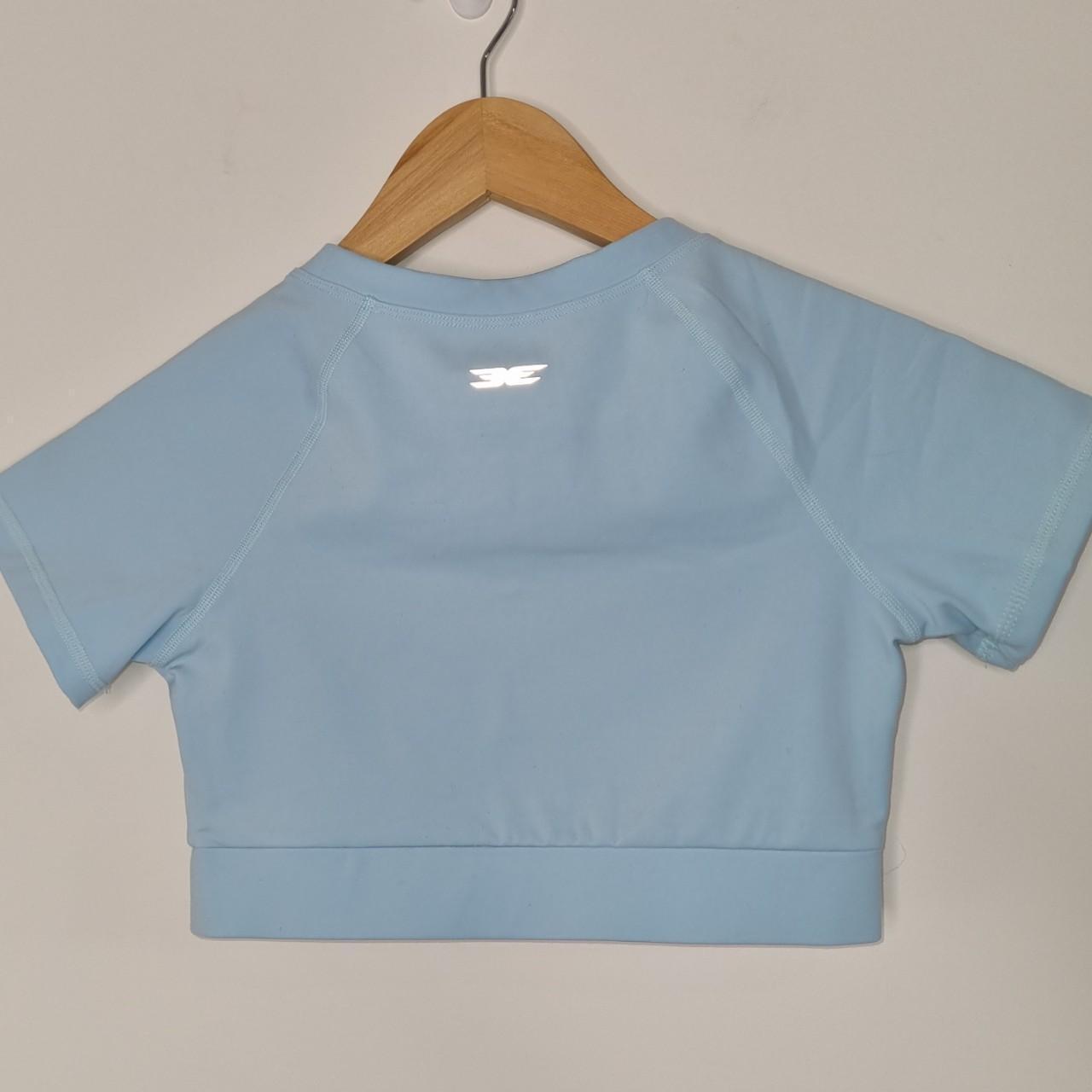 Elite Eleven Baby Blue Cut Out Crop Top – Size S. Trendy Elite Eleven crop top in baby blue. Designed for activewear or athleisure, with a sleek and supportive fit.