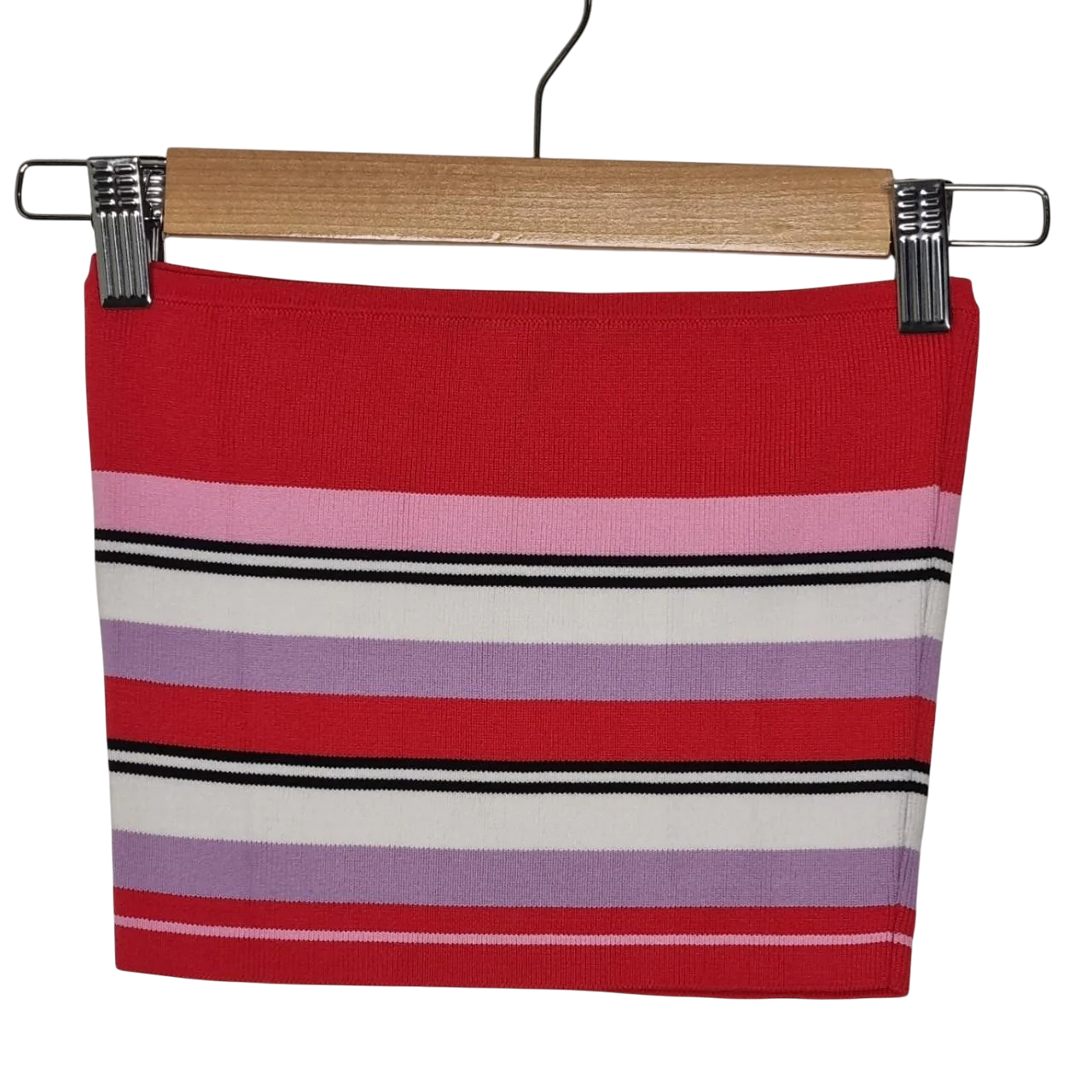 Trendy Glassons striped bandeau crop top in bold red, pink, lilac, black & white stripes. A cute retro-inspired piece that’s perfect for layering or wearing on its own in warmer weather. Pair with high-waisted jeans, denim skirts, or layer under a jacket for a Y2K/retro look.