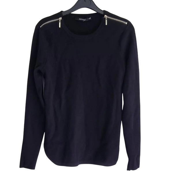 Portmans Black Knit Long Sleeve Top | Shoulder Zip Detail | Size XS