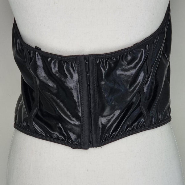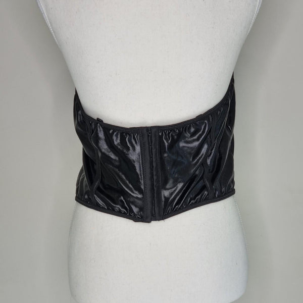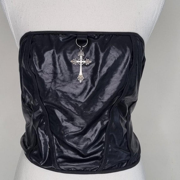 Romwe Black Faux Leather Corset Tube Top with Cross Pendant – Size XL