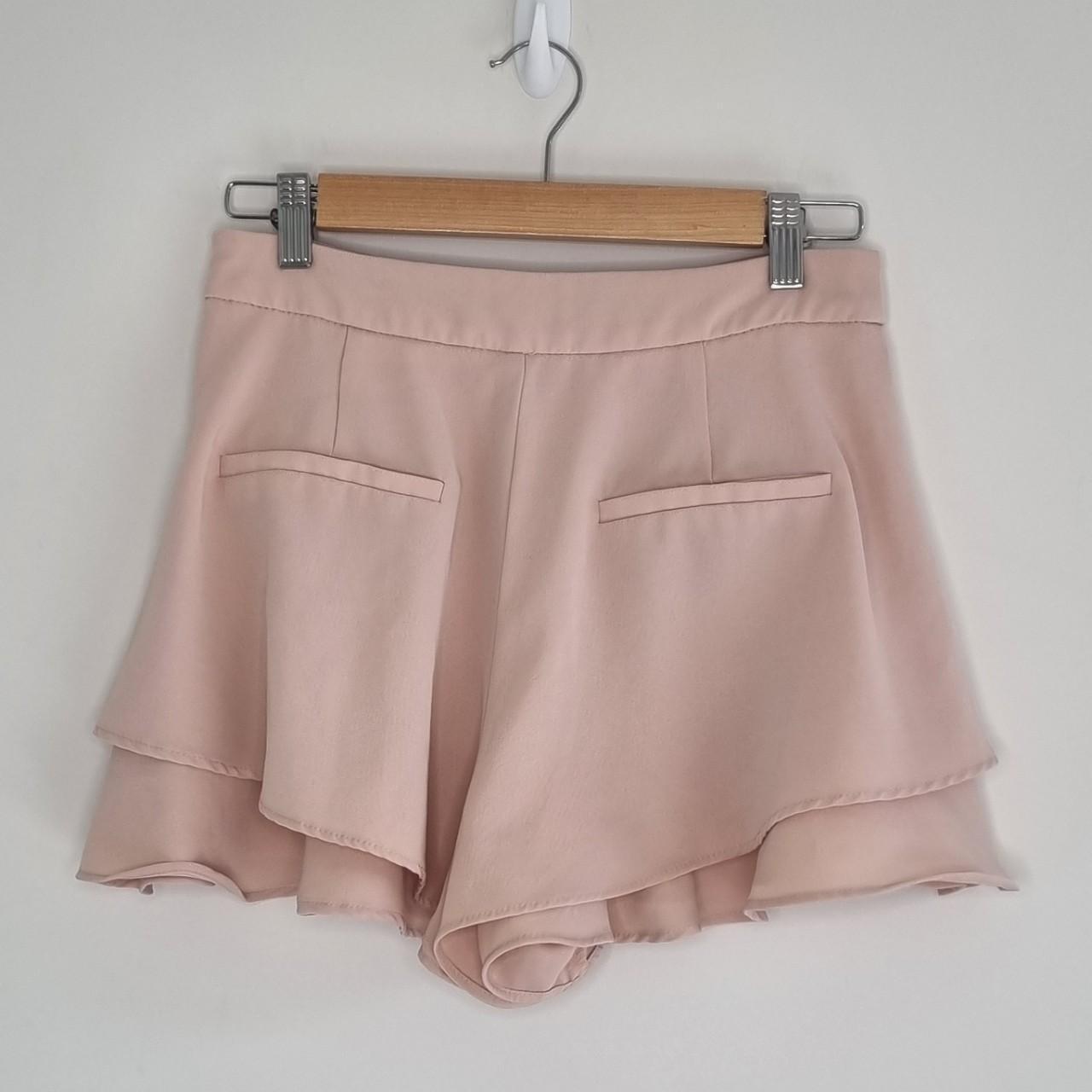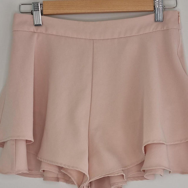 Chic and feminine blush-pink shorts from Zara Basic Collection, made in Spain. Designed with a flattering layered ruffle hem that gives the look of a mini skirt with the comfort of shorts.