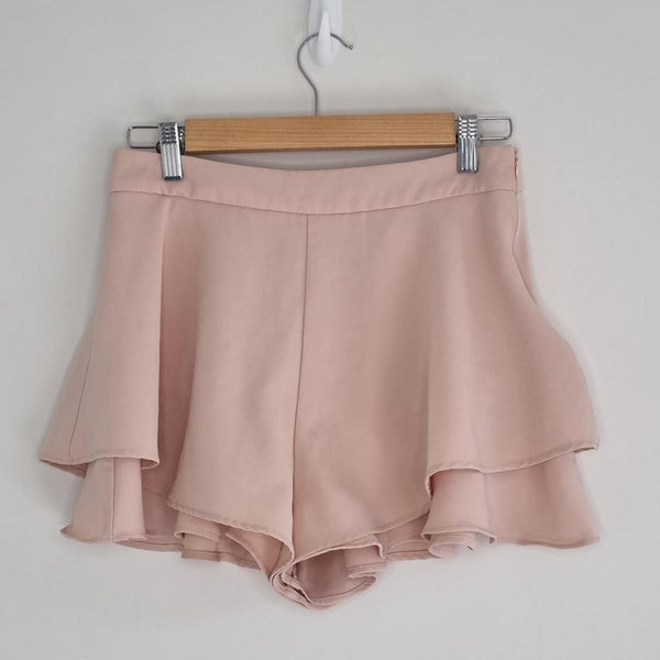 ZARA Basic Collection Layered Ruffle Shorts Pink Size 8 AU