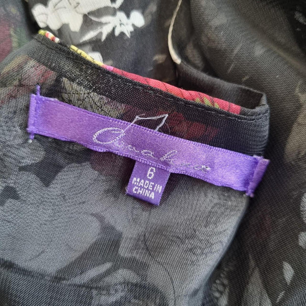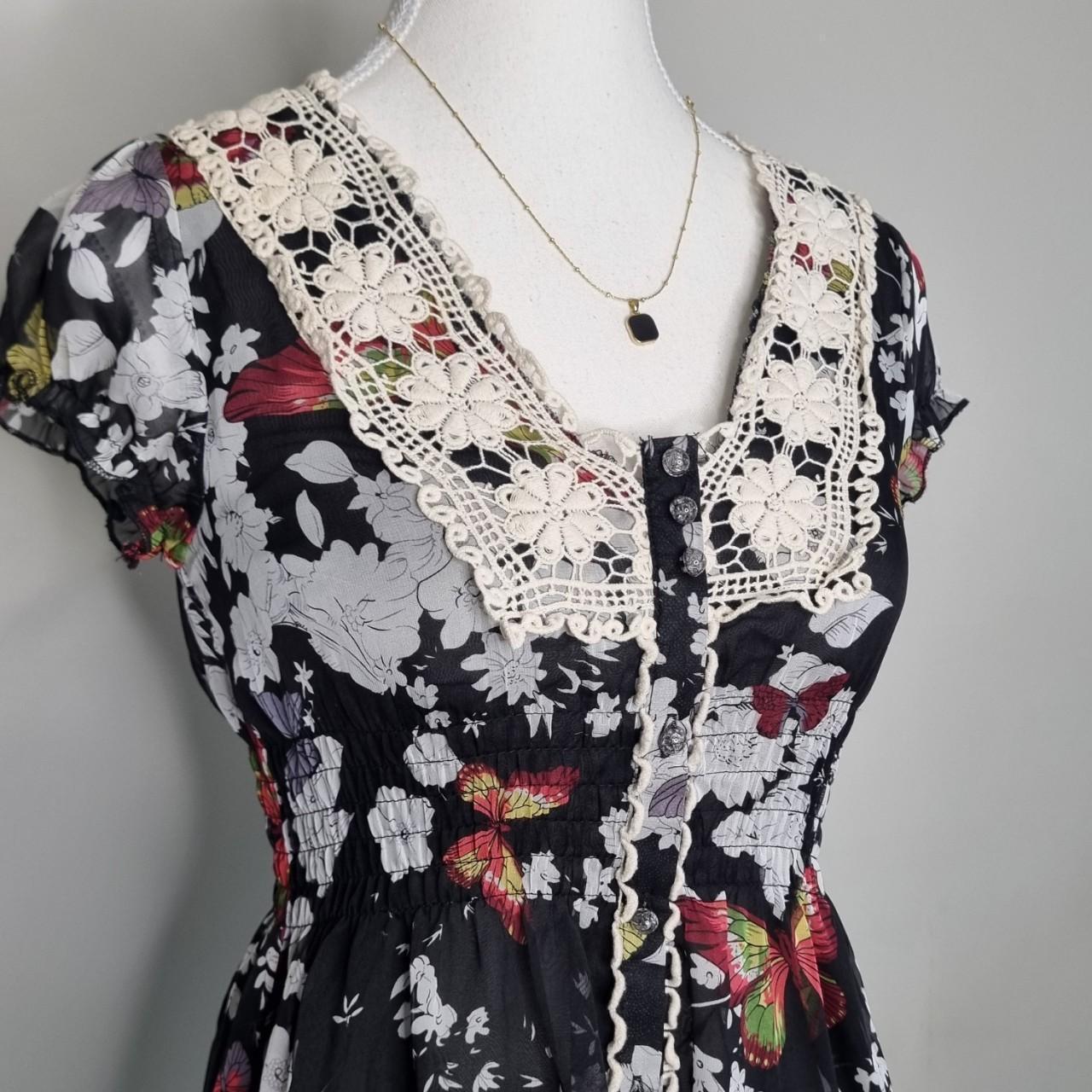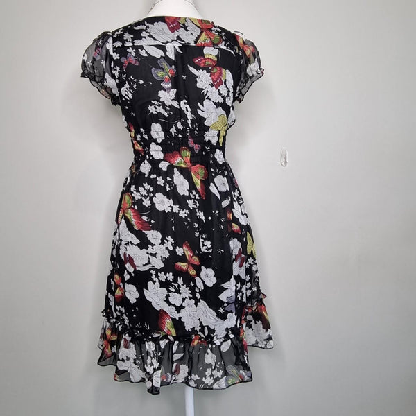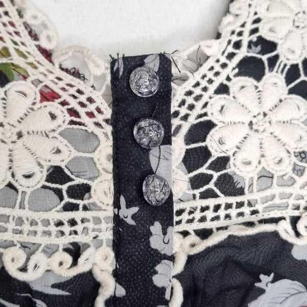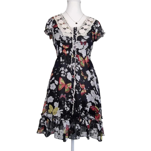 Coco Lace Butterfly Print Crochet Dress Black Size 6 AU