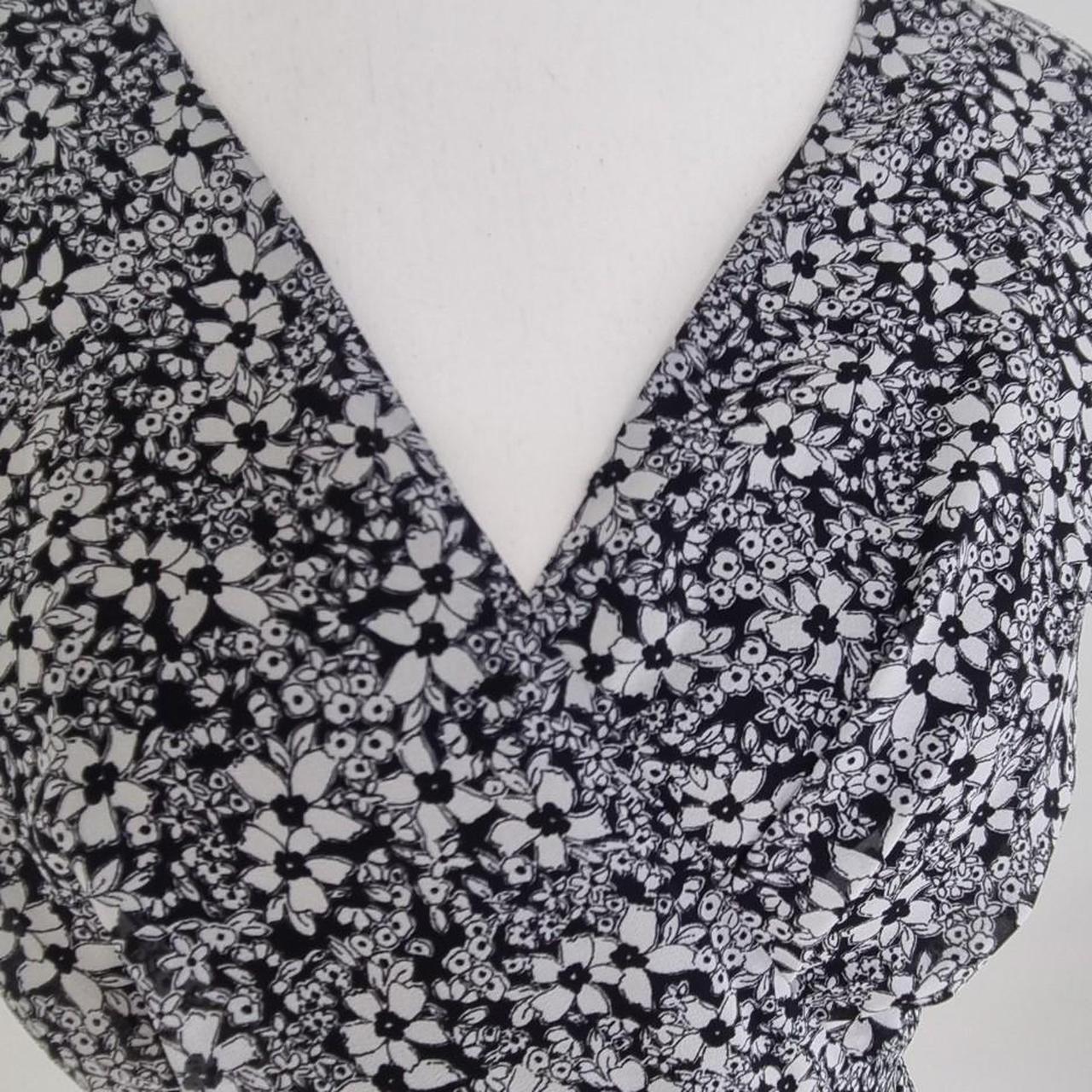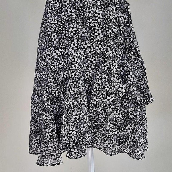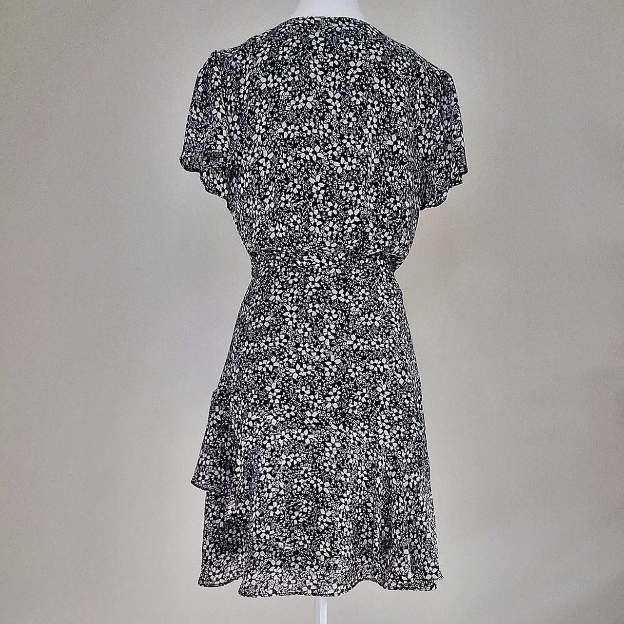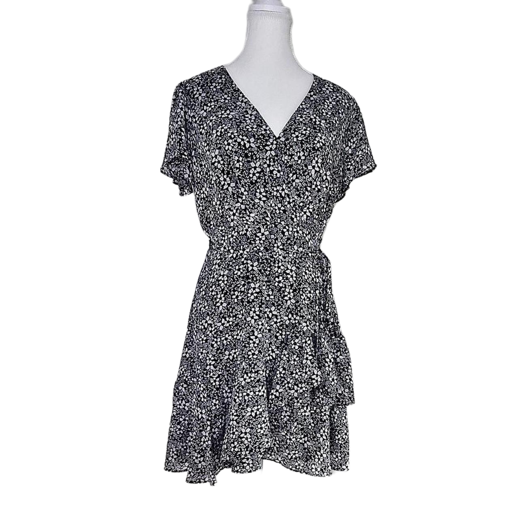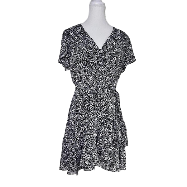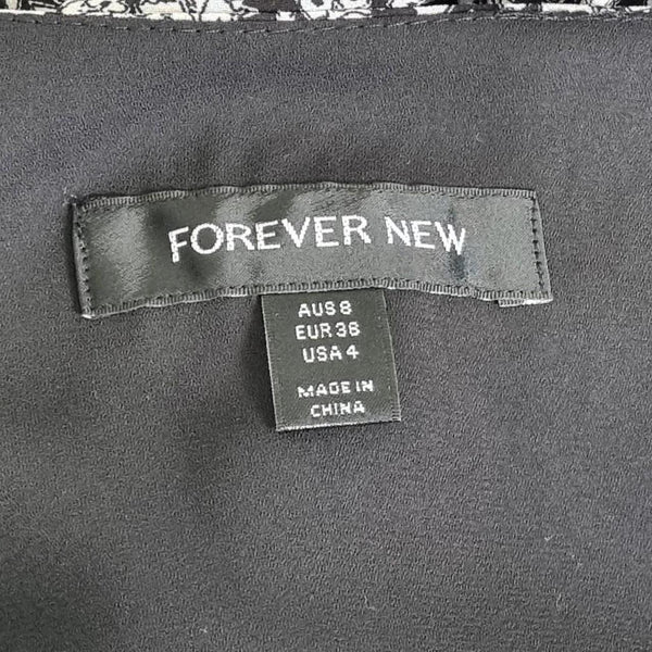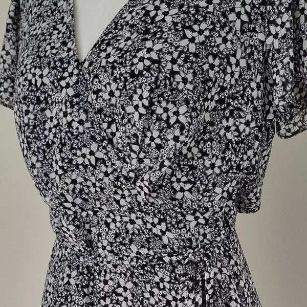 Forever New black and white floral print dress. Side zipper and tie around waist.
