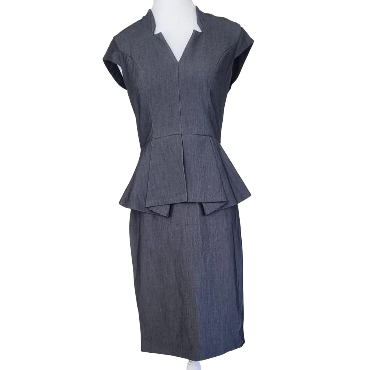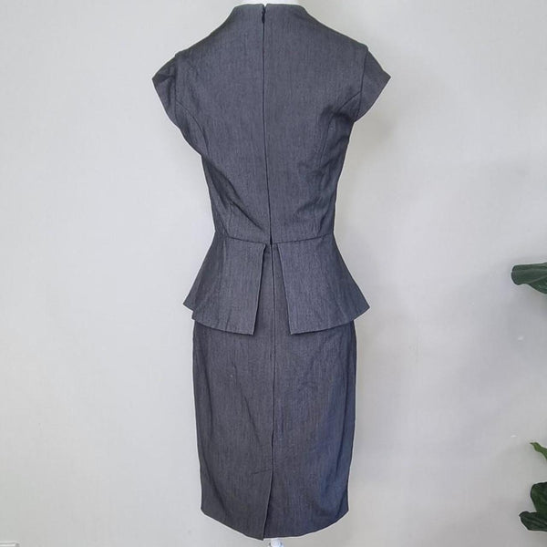 Jacqui-E Grey Peplum Pencil Dress | Women’s Workwear Office Formal – Size 6 AU