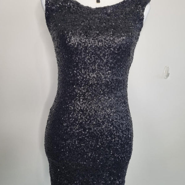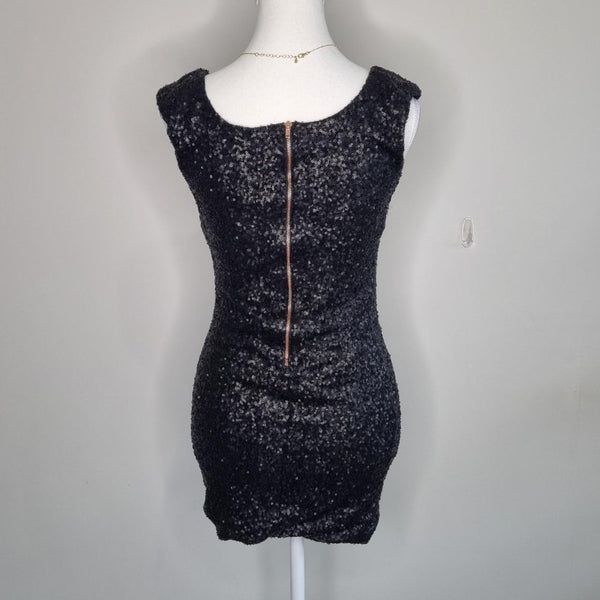 Minkpink Black Sequin Party Mini Dress. Zipper back.