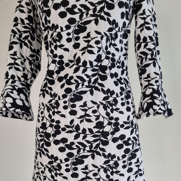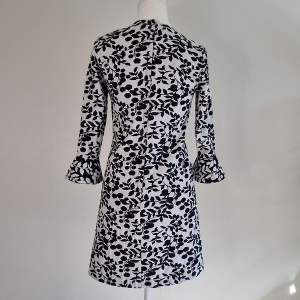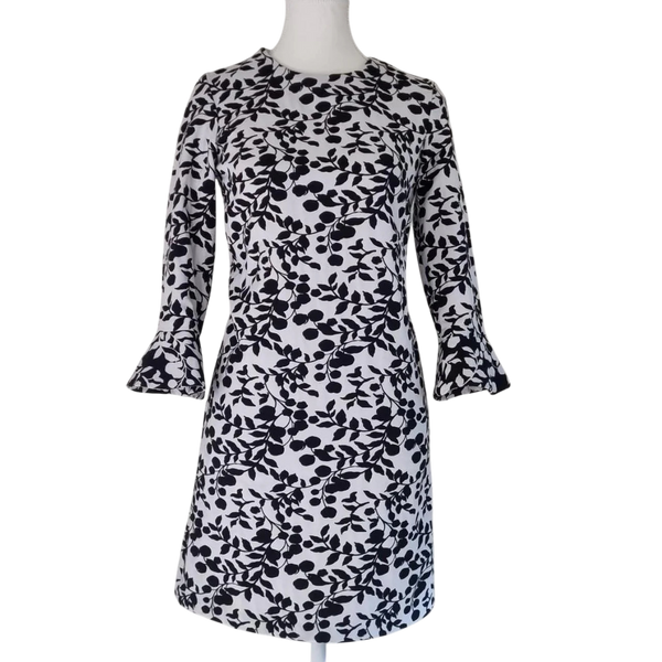 Miss Selfridge Black And White Floral Print Dress Ruffle Sleeve Cuffs Size 6 AU