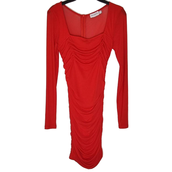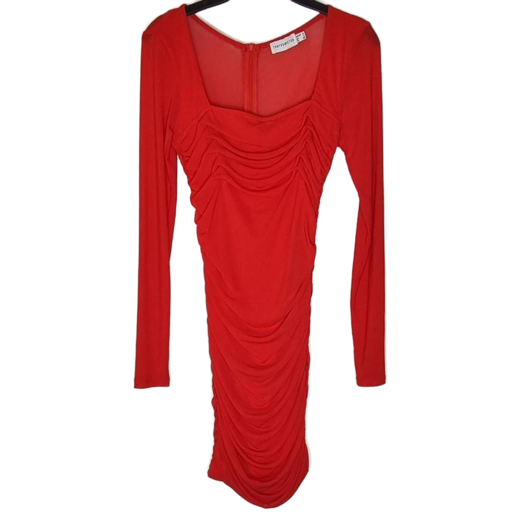 That's So Fetch Red mesh long sleeve bodycon dress 8AU