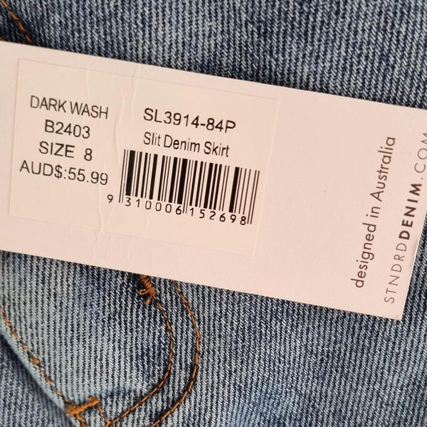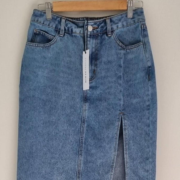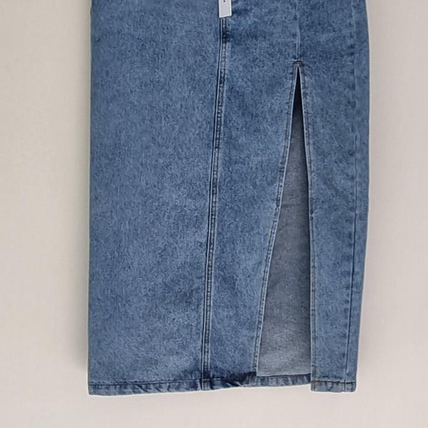 High-Waisted Denim Midi Skirt with Front Split Blue Size 8 AU