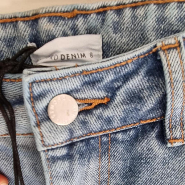 - Features: Front split hem, belt loops, pockets, zip & button fastening.