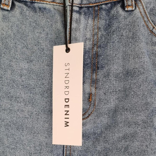 A modern wardrobe staple, this high-waisted slit denim skirt is designed with a flattering straight cut and a chic front split for ease of movement and style. Classic mid-blue wash with belt loops, front and back pockets, and zip/button closure.