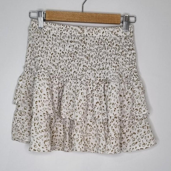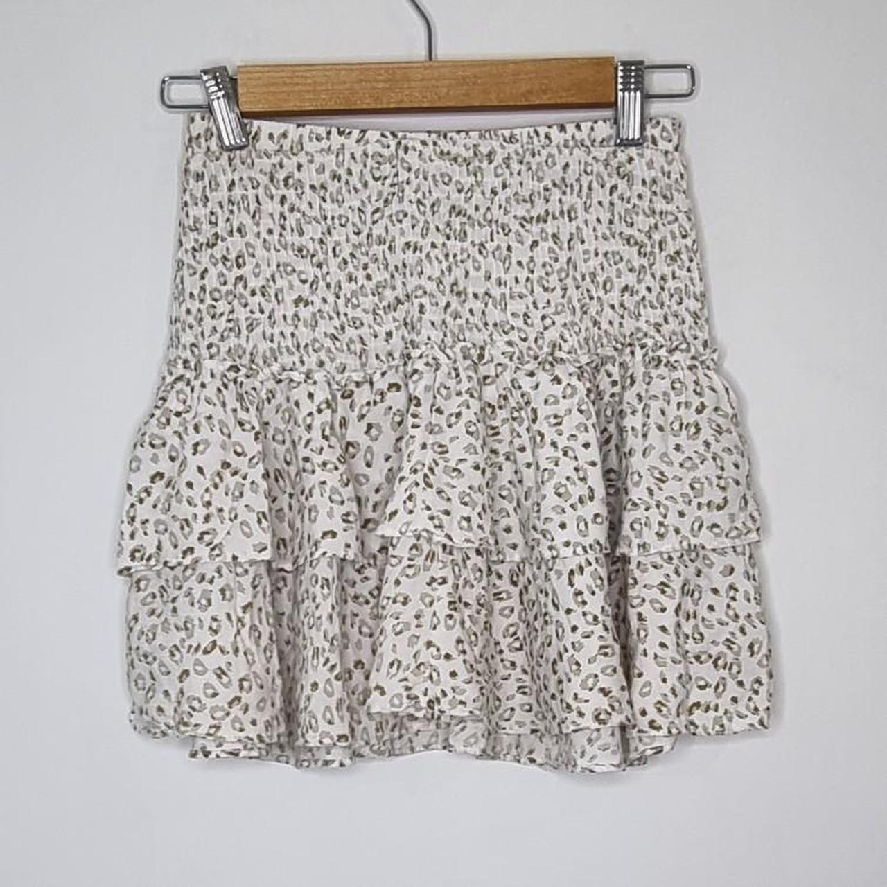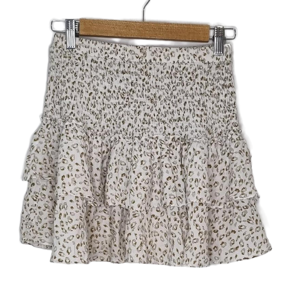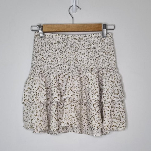 Luvalot Cream leopard print mini skirt with ruffle detail. Size 6 AU