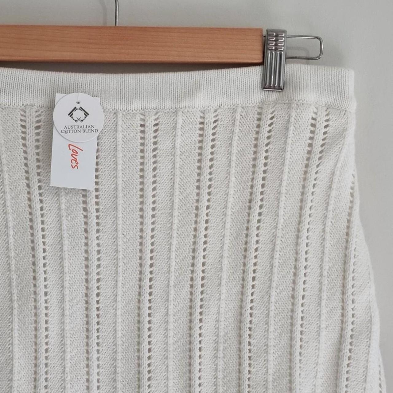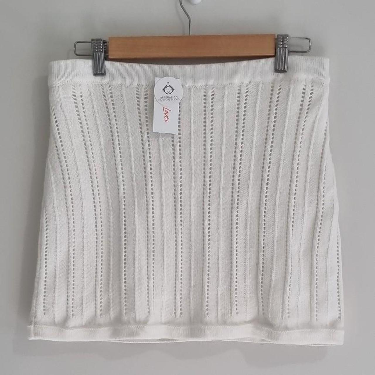 White mini skirt with ribbed crochet texture and stretchy fit, great for a preppy look or the beach. Lily Loves is a brand available at Target. Size small.