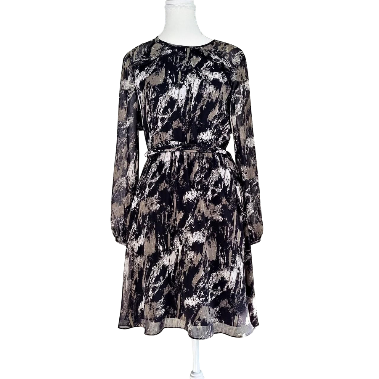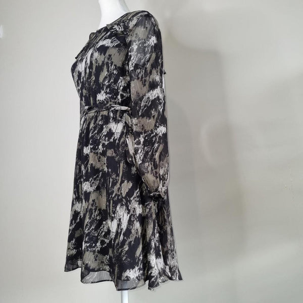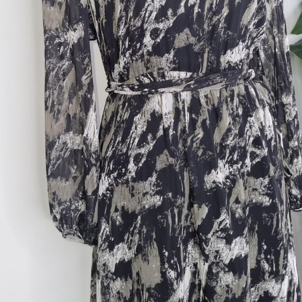 Witchery Abstract Print Midi Dress – Size 6 – Black/Grey – Excellent Condition