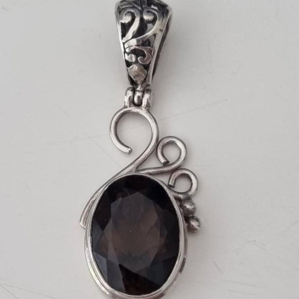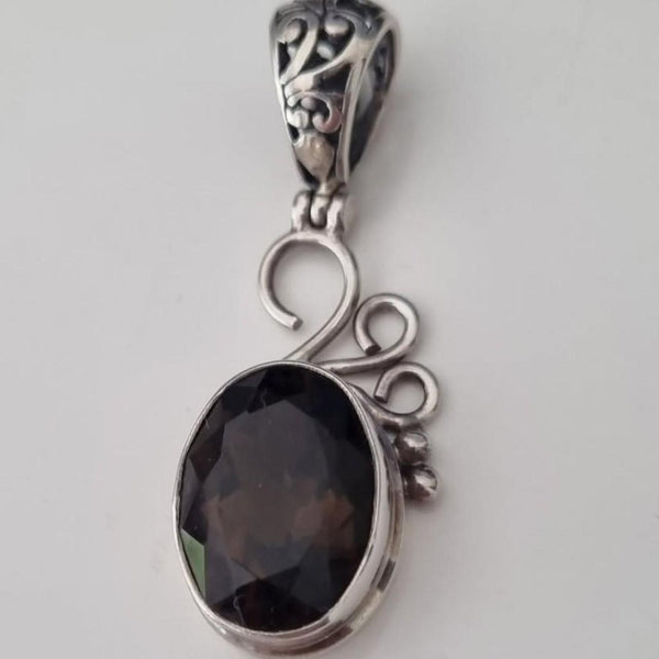 A Sterling Silver 925 Pendant With Natural Faceted Smoky Quartz Stone. 11gm. Pendant only. No chain included. Size: 30mm x 16mm