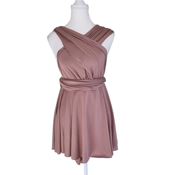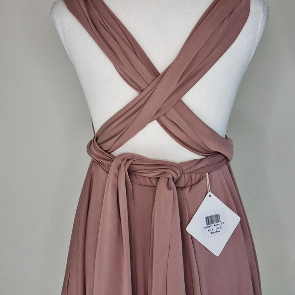 Angel Biba Mocha Multiway Convertible Dress – Size AU 8 (US S) – BNWT. Brand new with tags! A stunning and versatile mocha convertible dress from Angel Biba. Features wide straps that can be styled in multiple ways (halter, one-shoulder, strapless, cross-back, Grecian, and more), making it the ultimate piece for special occasions. Perfect for bridesmaids, weddings, cocktail parties, and formals. A flattering, flowy style that you can customise to suit your look and event.