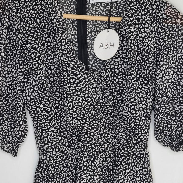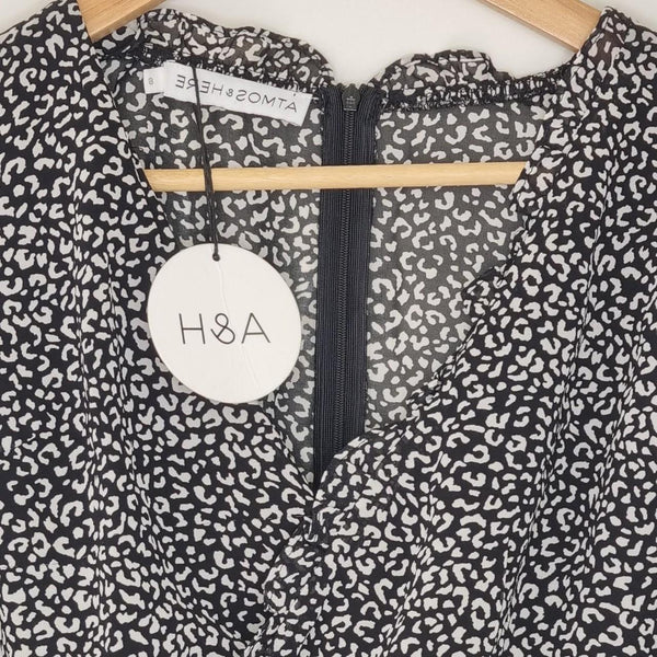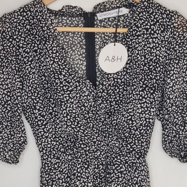 Atmos and Here Black White Animal Print Mini Dress 6 AU NWT