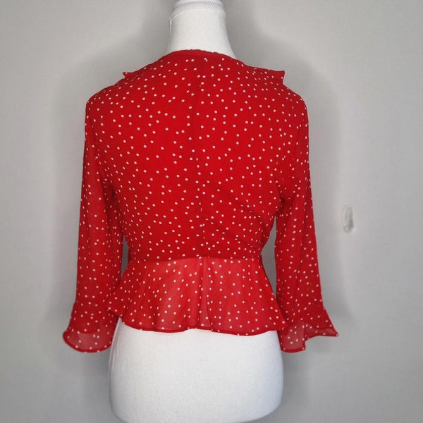 Bardot Red Polka Dot Wrap Blouse Red Size AU 8