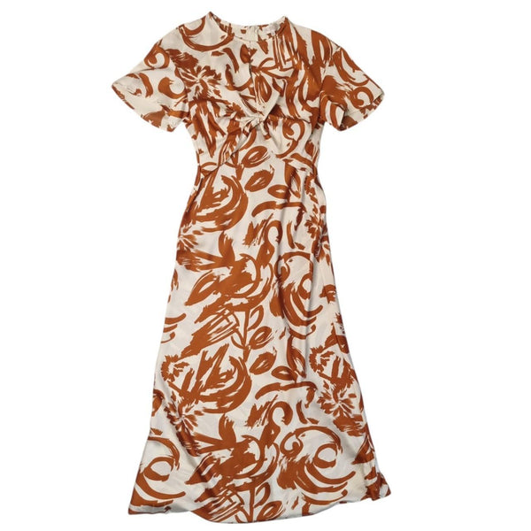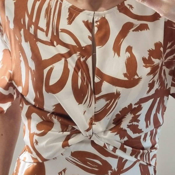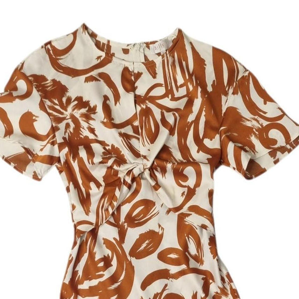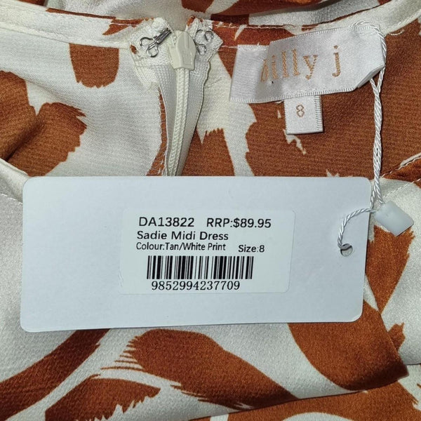 Billy J Sadie Midi Dress Tan/Cream Print Size 8 AU