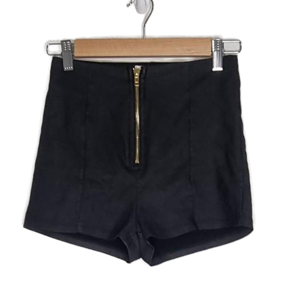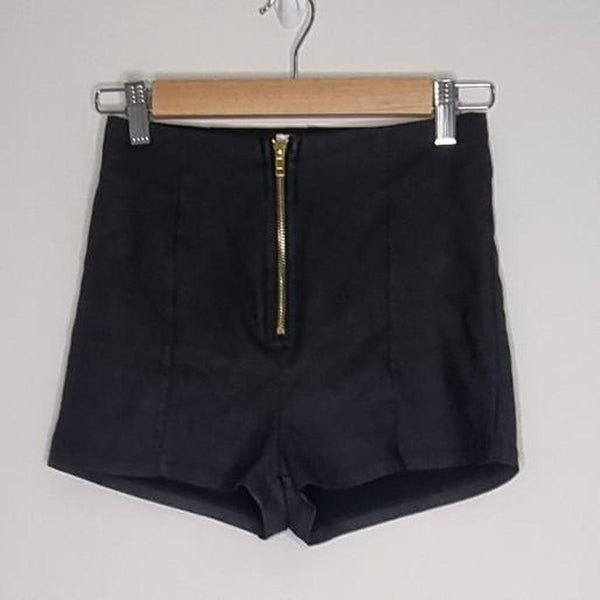 That's So Fetch Black Faux Leather Wet Look Shorts - Size 6 AU