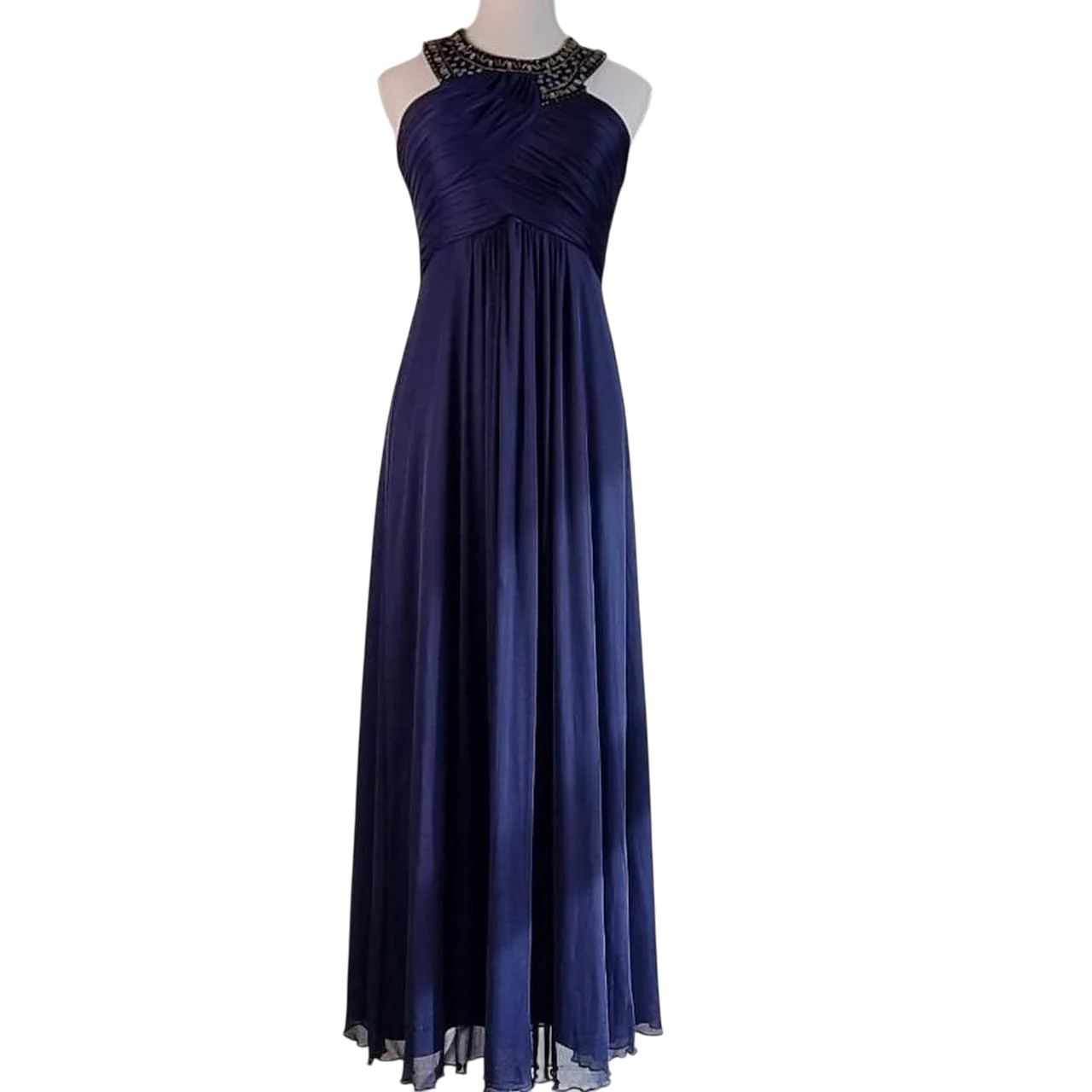 Black Label Contony Navy Blue Beaded Formal Gown Size AU 8