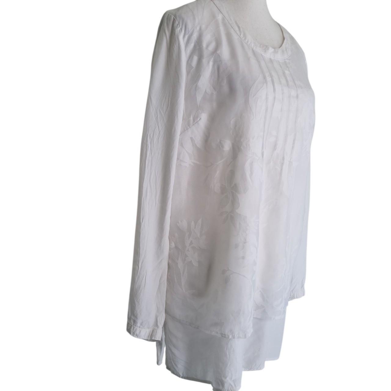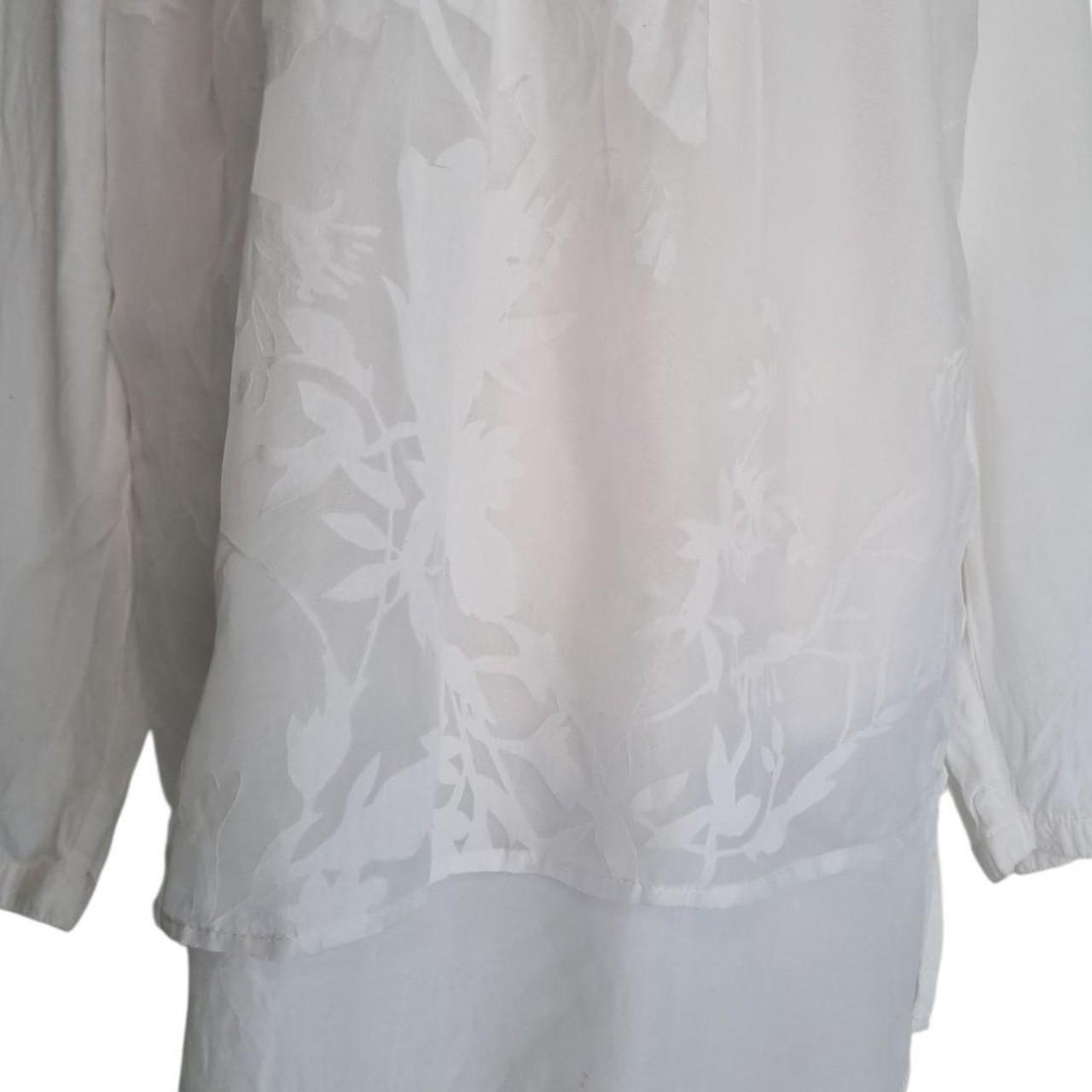 Blue Illusion White Floral Textured Tunic Blouse Top – Size XL