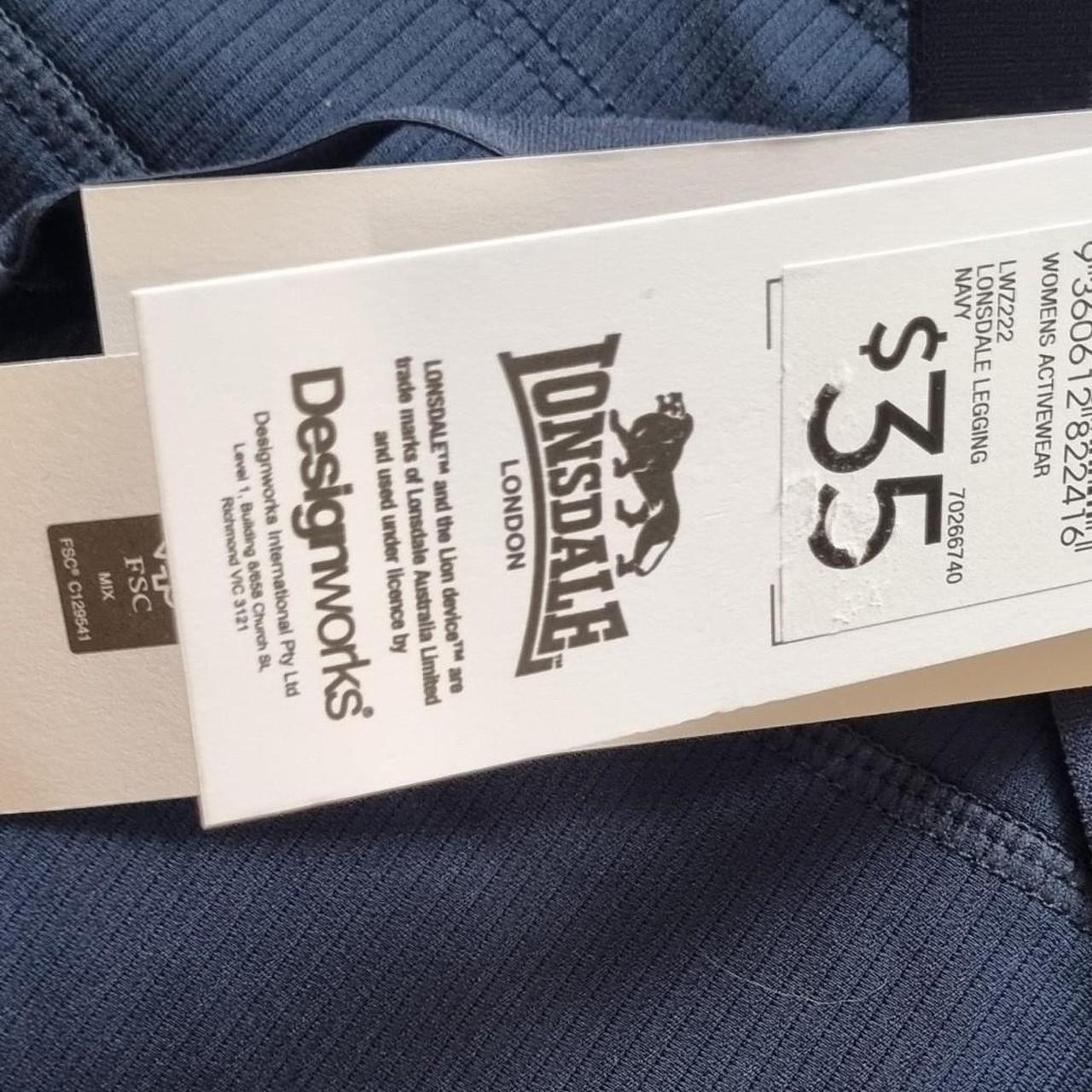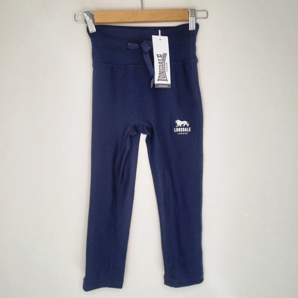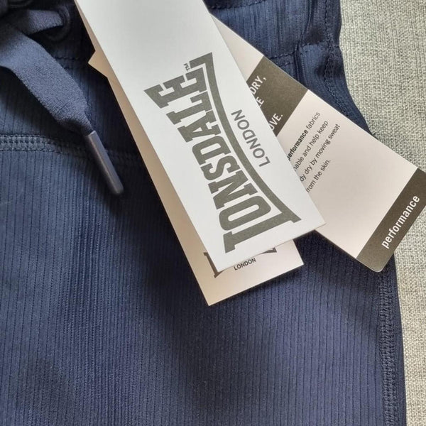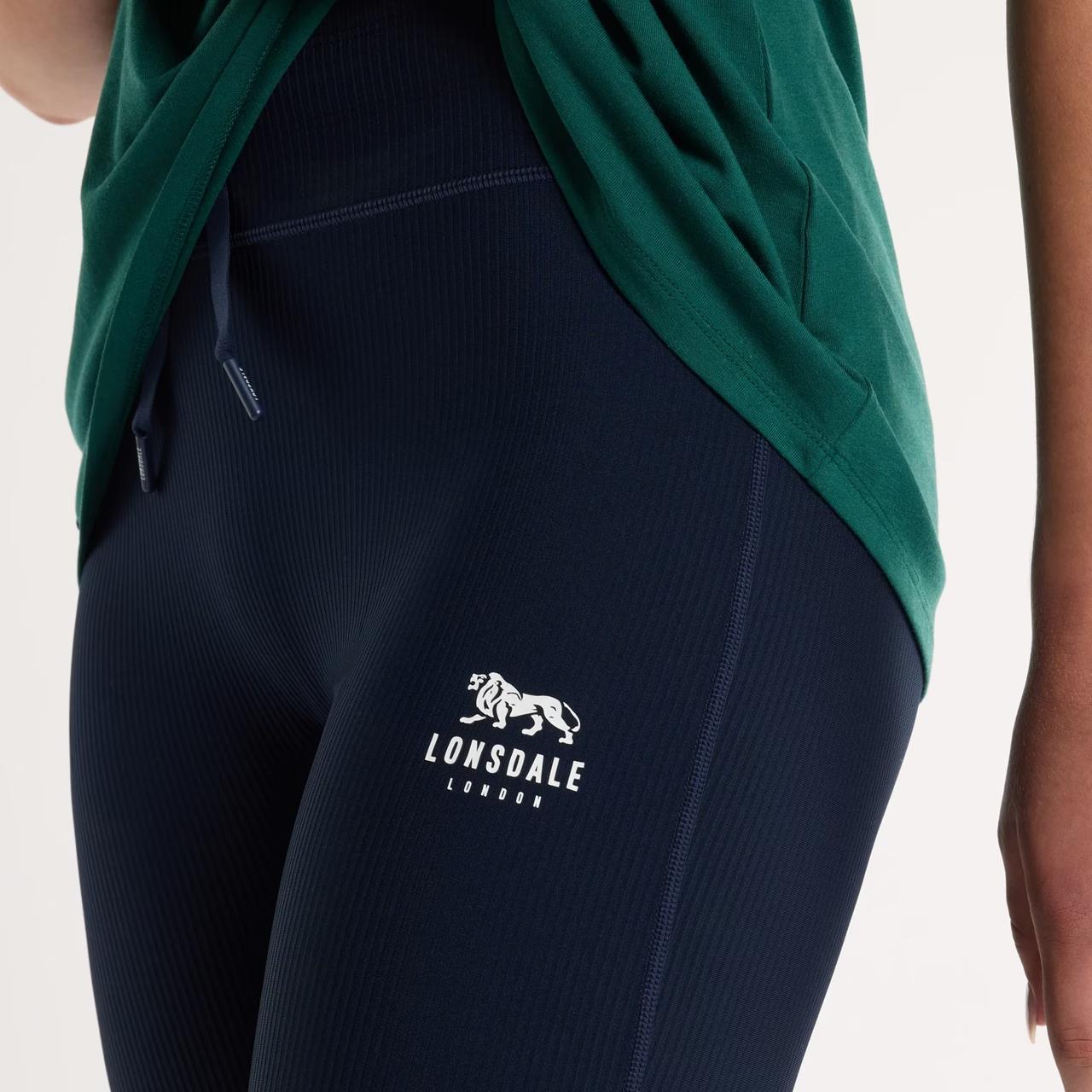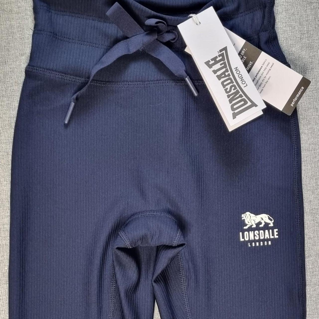 Blue Lonsdale Active Capri leggings. New with tags. Crafted from a Polyester/Elastane rib, providing a comfortable and flexible fit. They feature the classic Lonsdale print logo on the thigh and functional drawcords for ease of fit. This Capri pant is perfect for casual or athletic wear. - Size 8 - Made from a polyester rib fabrication - Stretch elastane for comfort - All over rib design - Contains moisture wicking for dryness - Regular fit - Flat thick.