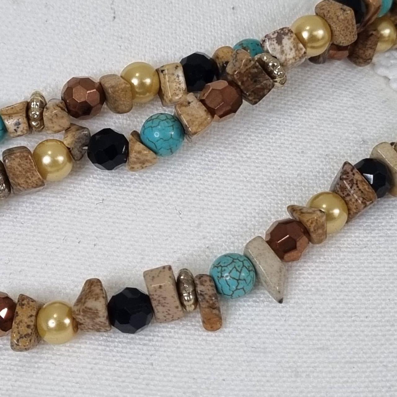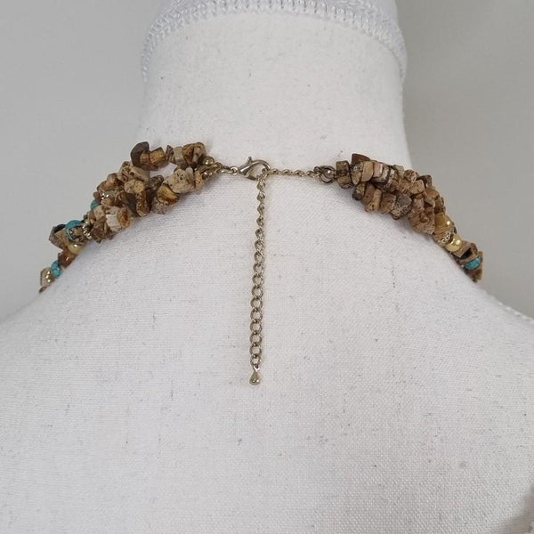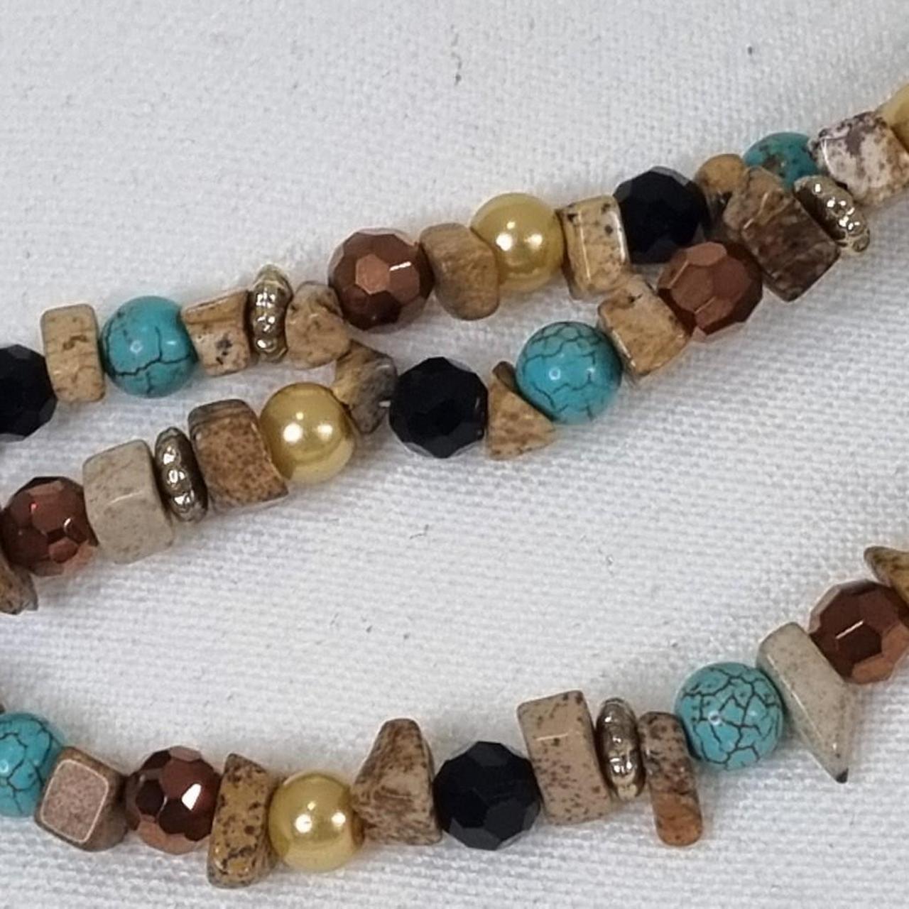 Brown and tan beaded necklace with gold accents, jewellery