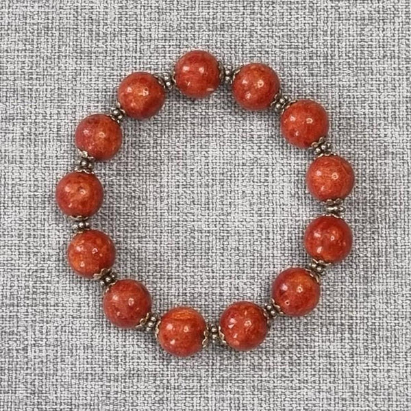 Coral & Sterling Silver Beaded Bracelet | Natural Gemstone