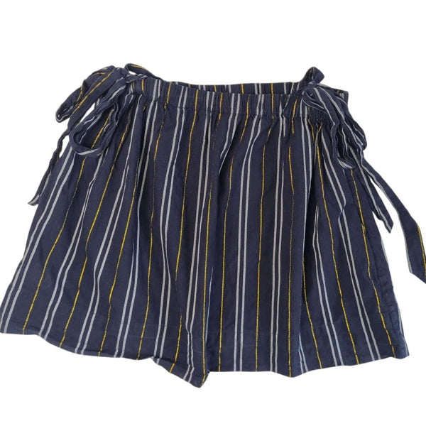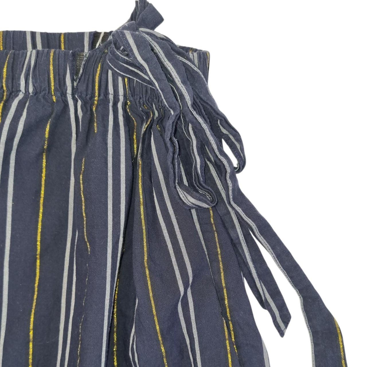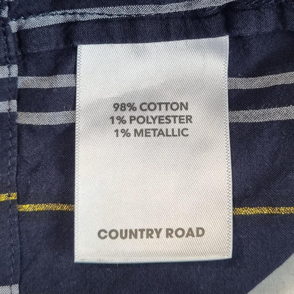 Country Road Striped Cotton Metallic Skirt Navy Elastic Waist Size 4 AU