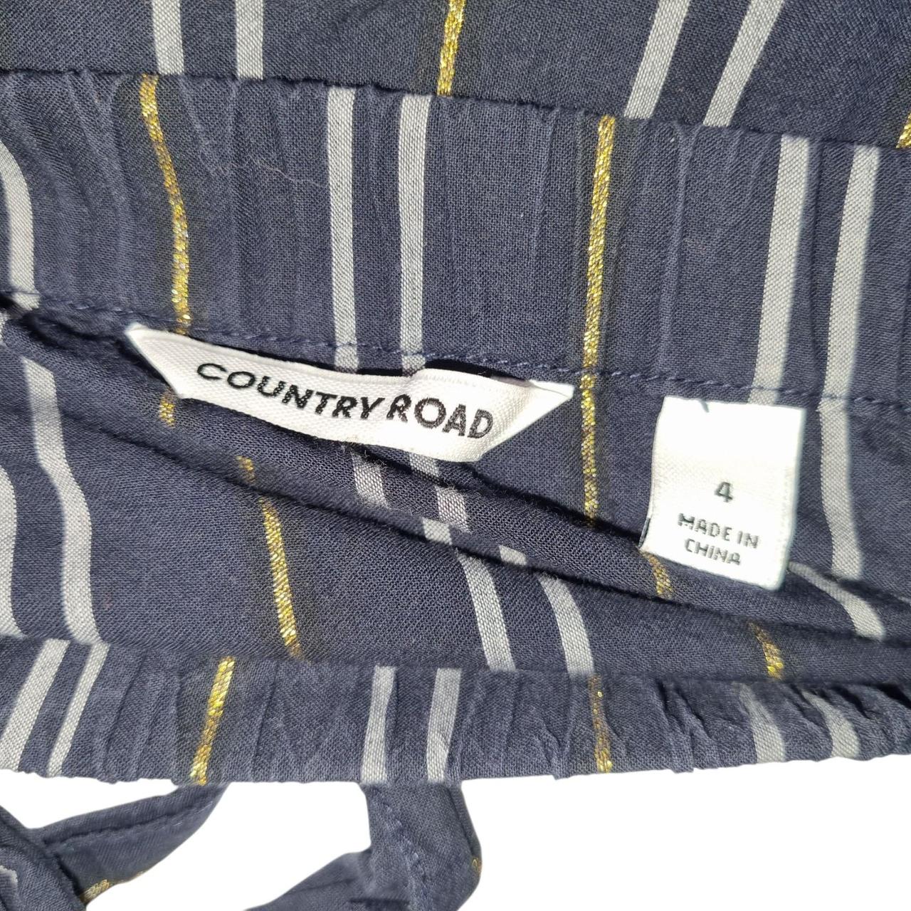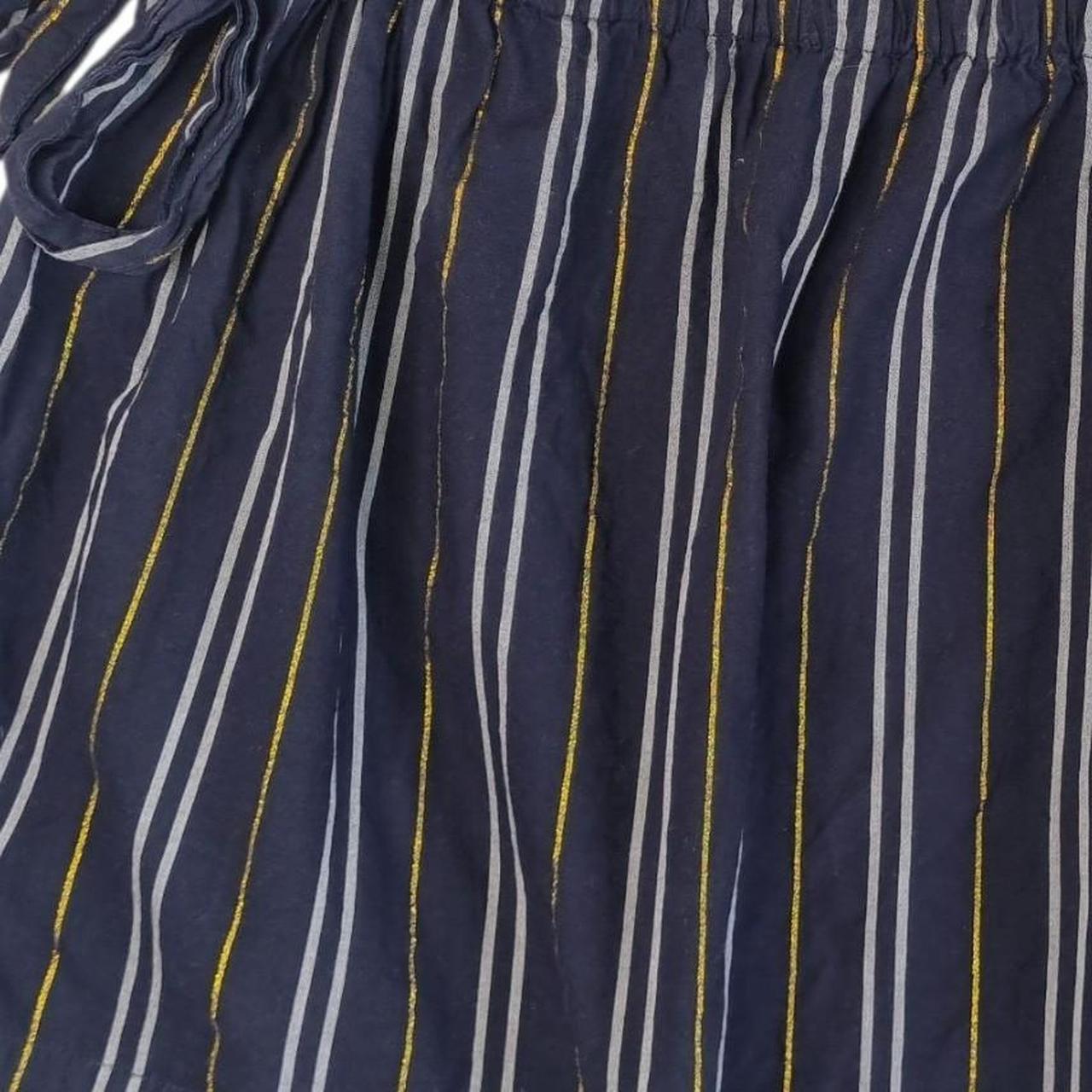 Country Road Striped Cotton Metallic Skirt Navy Elastic Waist Size 4. Chic and versatile Country Road striped skirt, designed with a relaxed silhouette and lightweight cotton blend fabric. Breathable, comfortable, and effortlessly stylish. The metallic thread adds a subtle shimmer, making it perfect for both everyday wear and dressier occasions.