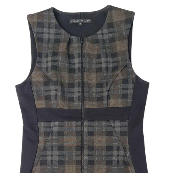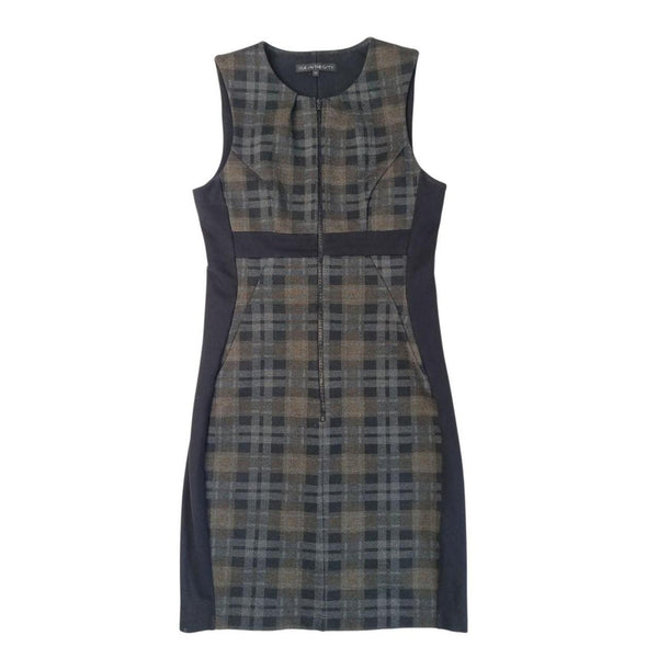 Cue Plaid Check Sleeveless Sheath Dress Size 10 AU