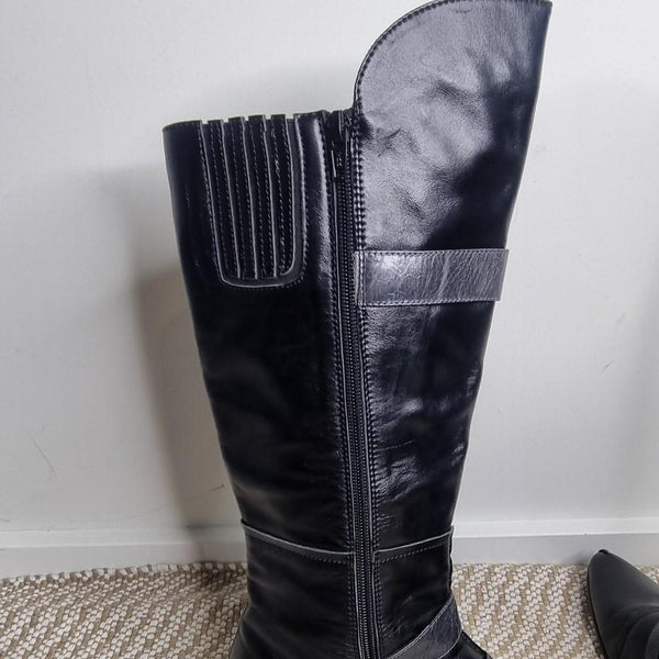 festival Django Juliette Black Leather Tall Boots Size AU 10