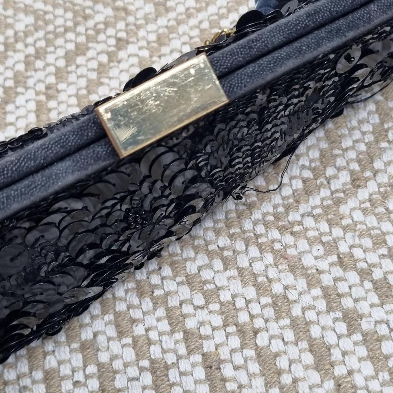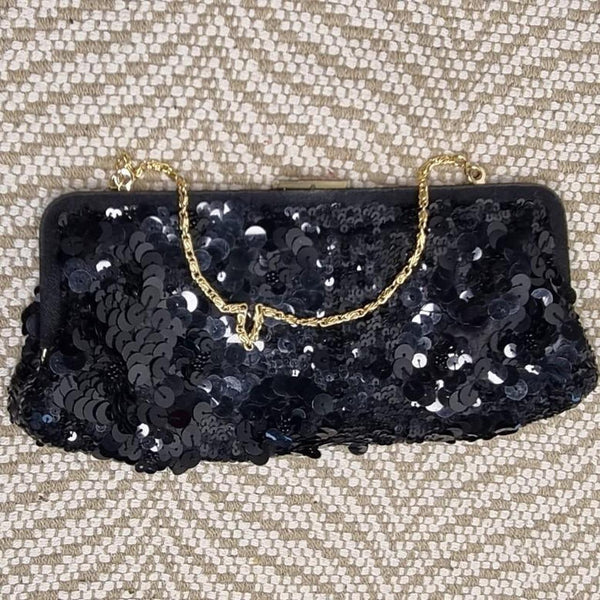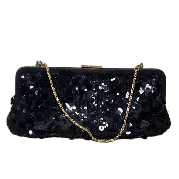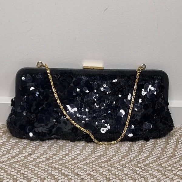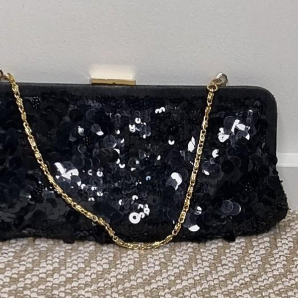 Elegant Monsoon Black Sequin Clutch Bag Gold Hardware With Chain Strap