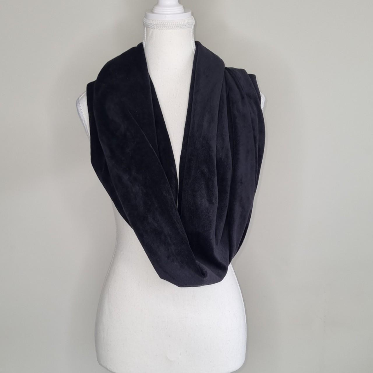 Elevate your winter wardrobe with this Decjuba D-Luxe infinity scarf in plush black velvet. - Brand: Decjuba (D-Luxe collection) - Colour: Black - Style: Infinity scarf / snood soft drape, versatile styling - Material: Velvet-feel polyester blend (soft, cosy and lightweight) Condition: Excellent pre-loved condition. Perfect for layering through the cooler months. Effortless chic piece that works with casual denim or tailored coats.