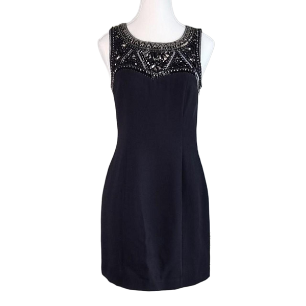 Forever New Black Beaded Cocktail Dress – Size 8 AU. Turn heads in this stunning preloved Forever New embellished sleeveless dress, the perfect blend of glamour and timeless elegance. Crafted in classic black with intricate hand-beaded detail across the neckline and bodice, this showstopper catches the light beautifully, making it ideal for cocktail parties, evening events, or special occasions. Sparkling beaded embellishments, sleek side zip for a flawless fit