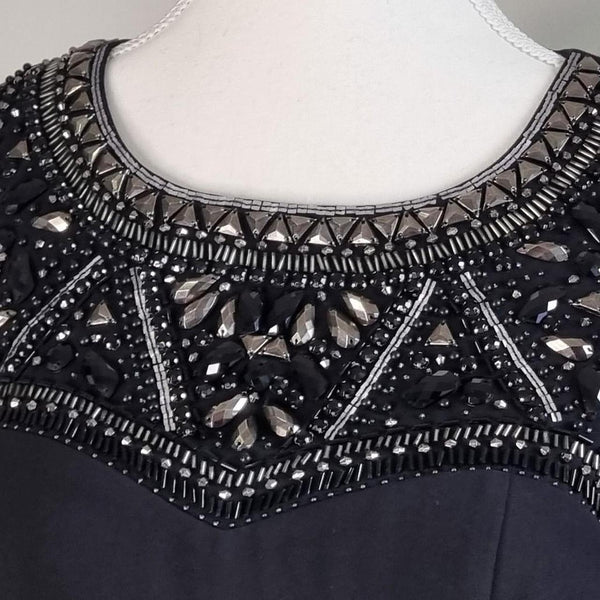 This is a true little black dress with a luxe twist – pair with heels and statement earrings for a red-carpet look, or keep it simple and let the beading do the talking.