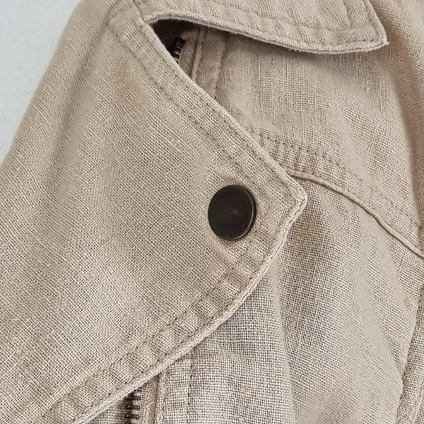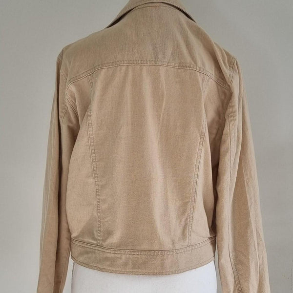 Jeanswest beige lightweight jacket with zipper closure. 55% Linen and 45% cotton.