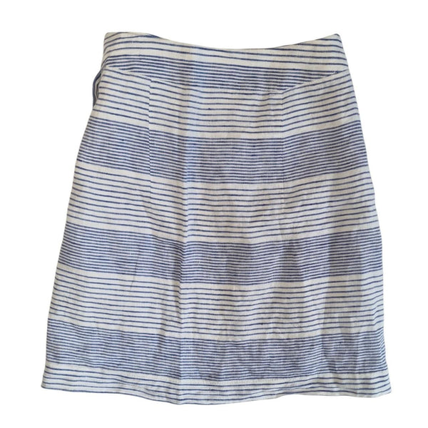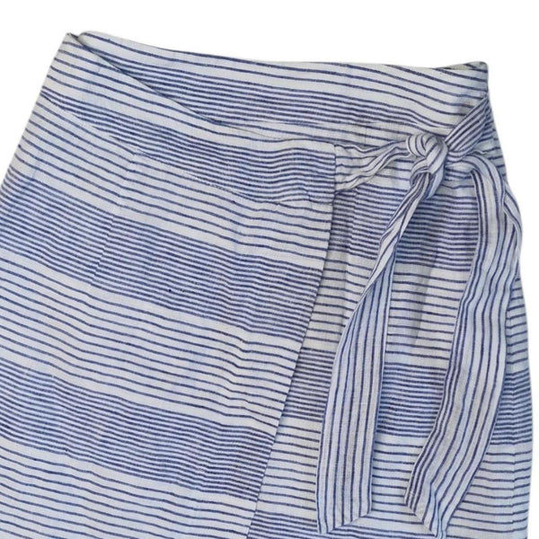 Kookai Blue White Striped Linen Wrap Mini Skirt Size 34 AU 6